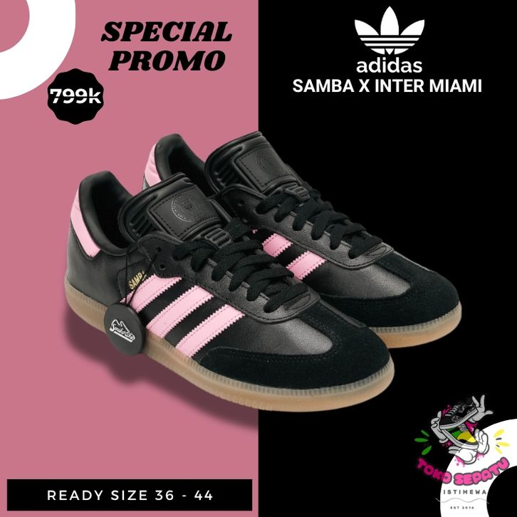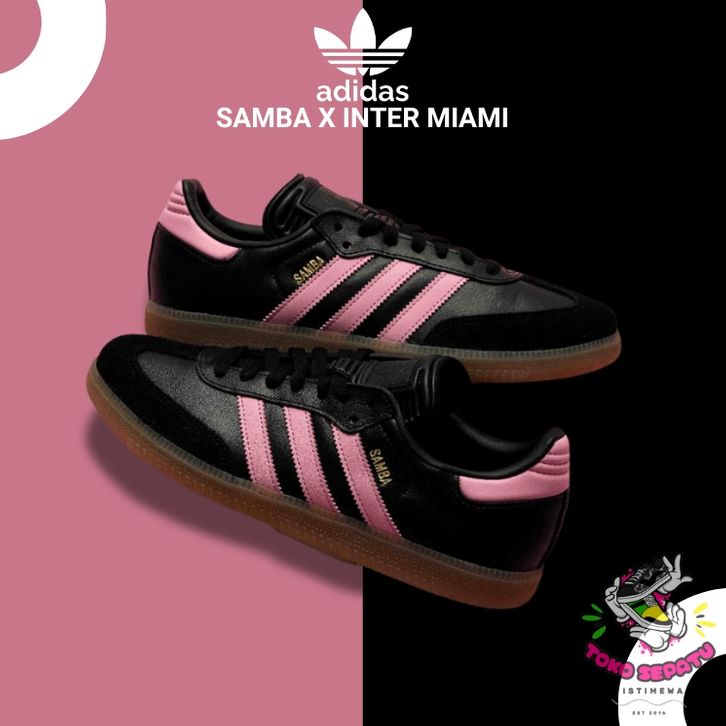 Sepatu Sneakers Pria Wanita Casual Adidas Samba X Inter Miami Away Black List Pink Gum Suede Premium Quality Super Promo