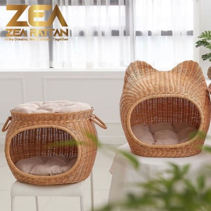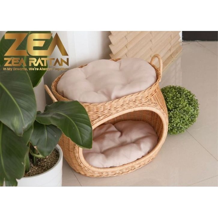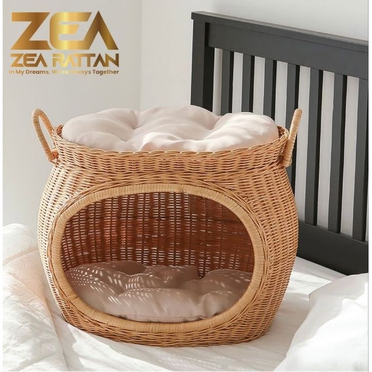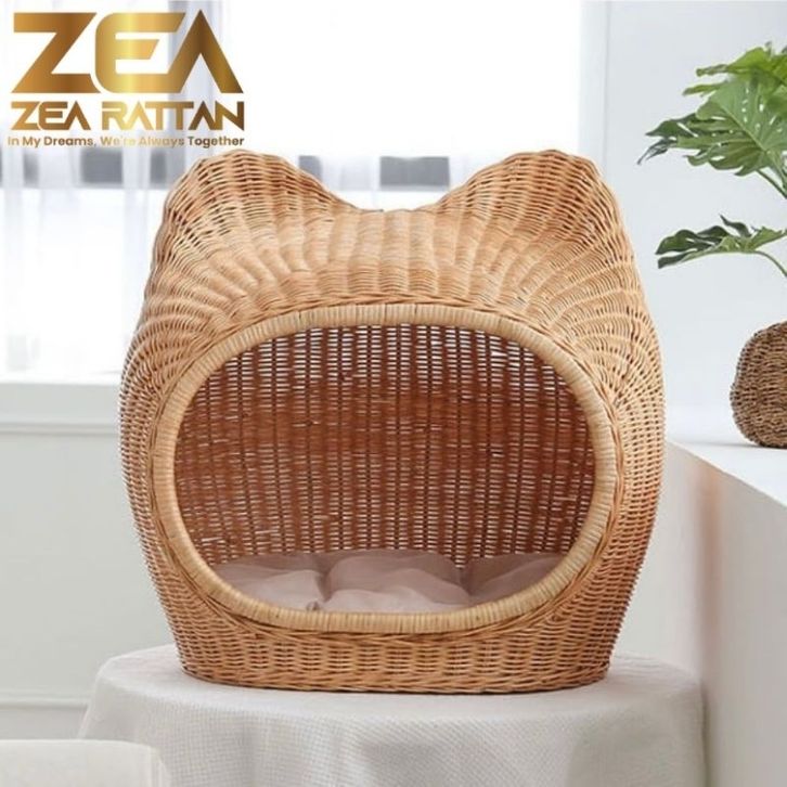 Rumah Kandang Tempat Tidur Hewan Kucing Rotan Asli Alami Natural Murah Minimalis High Quality