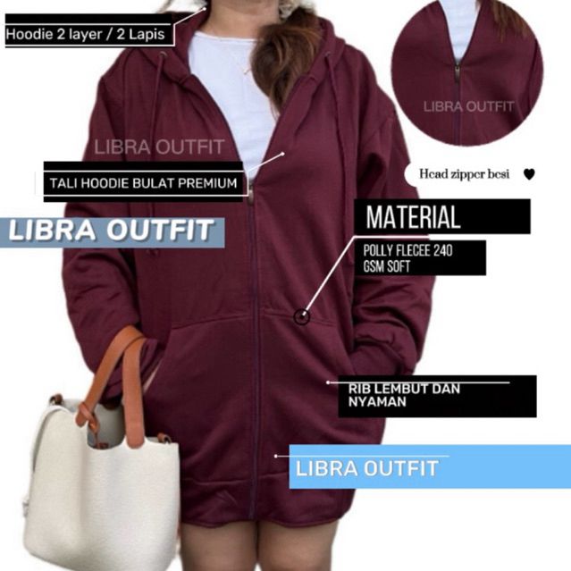 Oversize Hoodie polos Zipper jaket Switer Wanita Korea dupe carla by libra