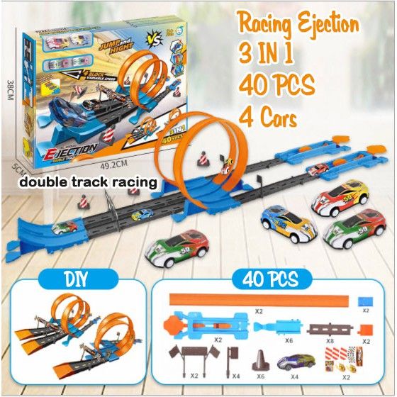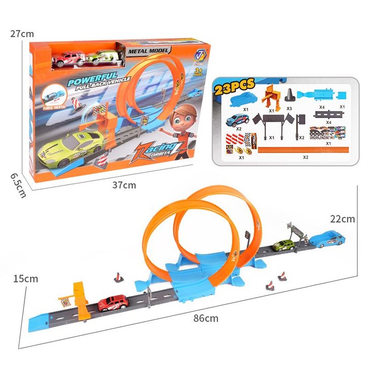 Mainan Anak Car Track Racing Orbita Terdapat 2 mobil pull back