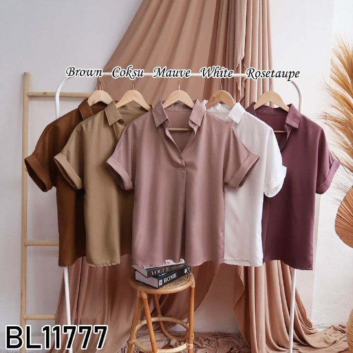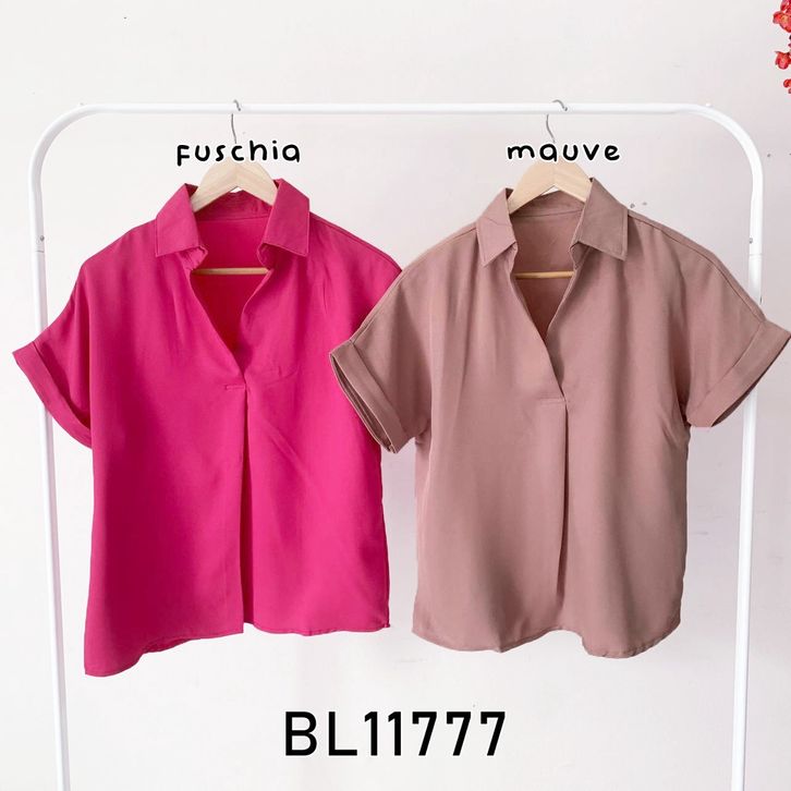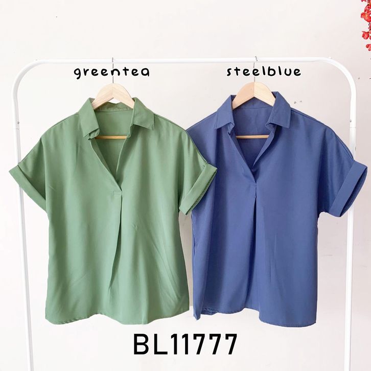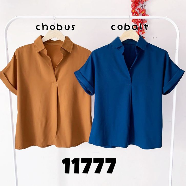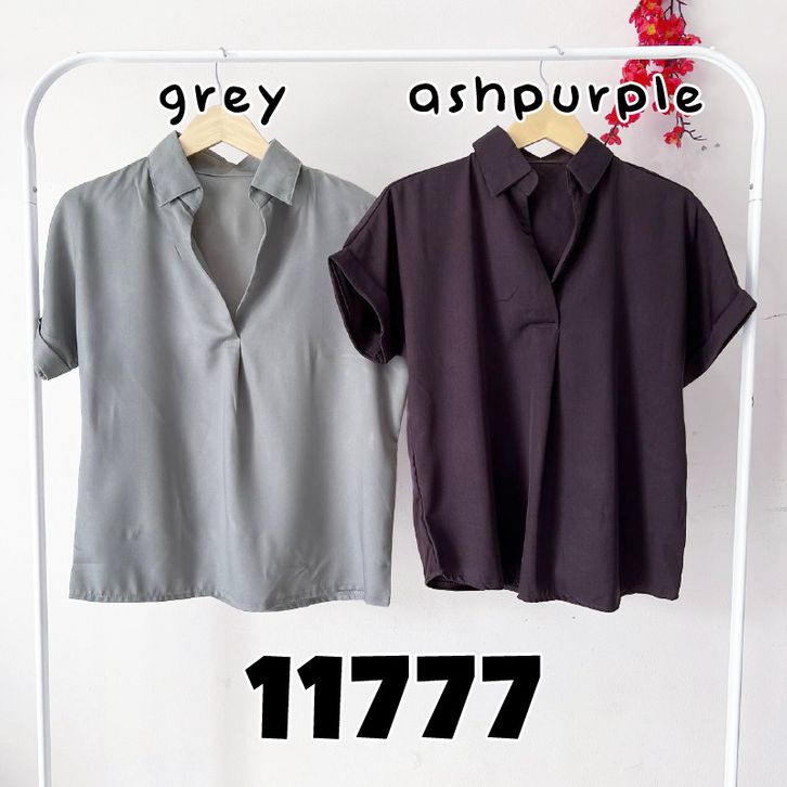 Baju atasan kemeja lengan pendek pergi kuliah jalan santai casual fashion cewek wanita murah -11777