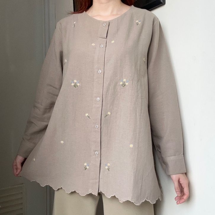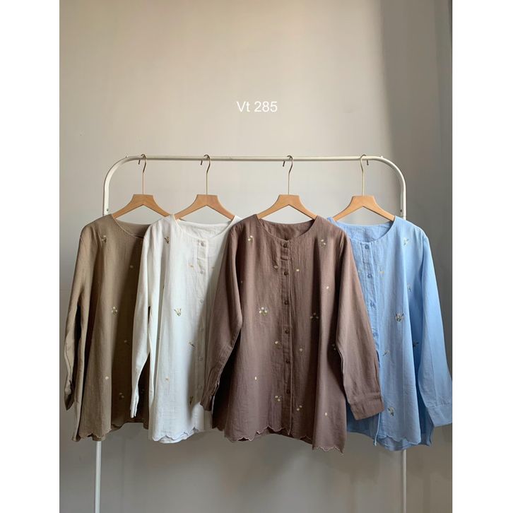 Citra Top atasan blouse wanita kerja linen bordir by Biel the label