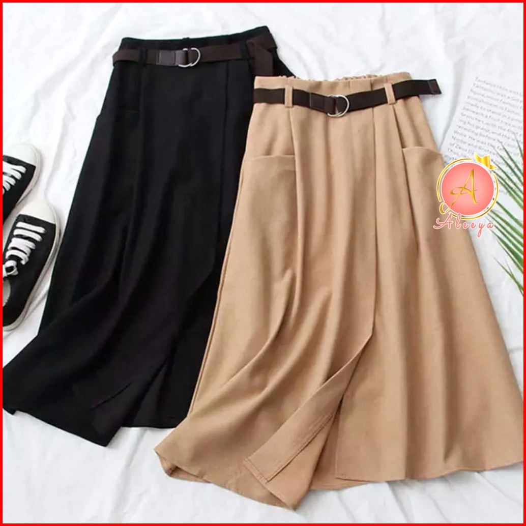 Aleeya Rok Suede 7 8 Free Belt Amber Midi Skirt Suede 2506