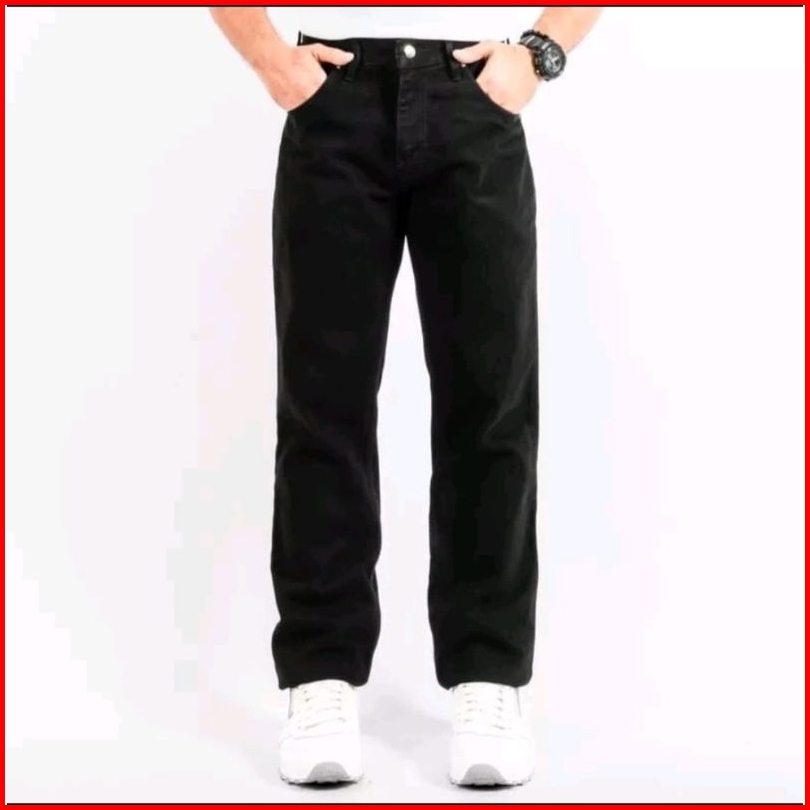 Celana Jeans Pria Panjang Hitam Reguler Fit Standar Besic 100 Denim