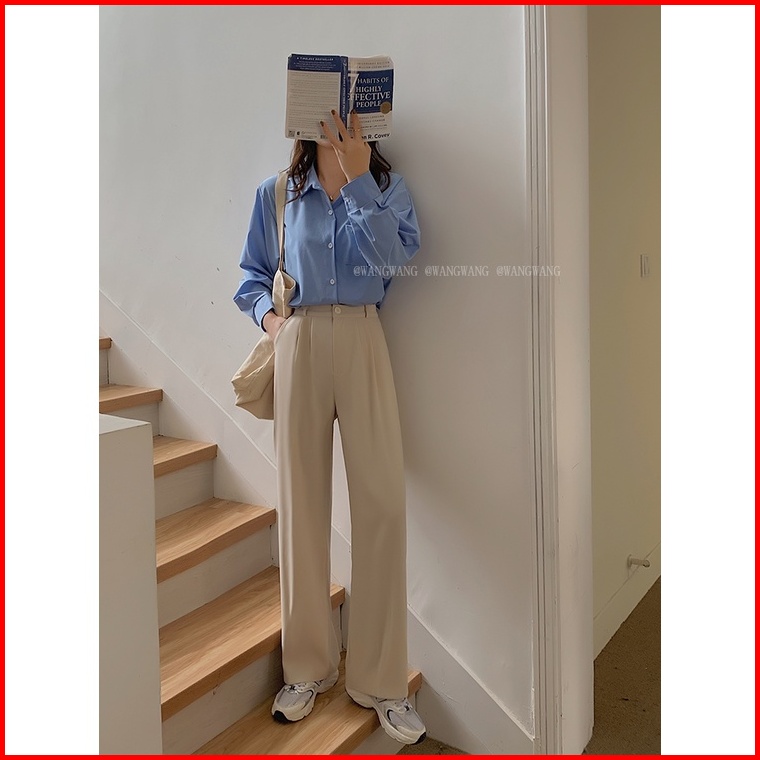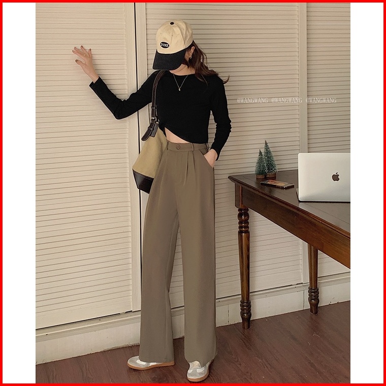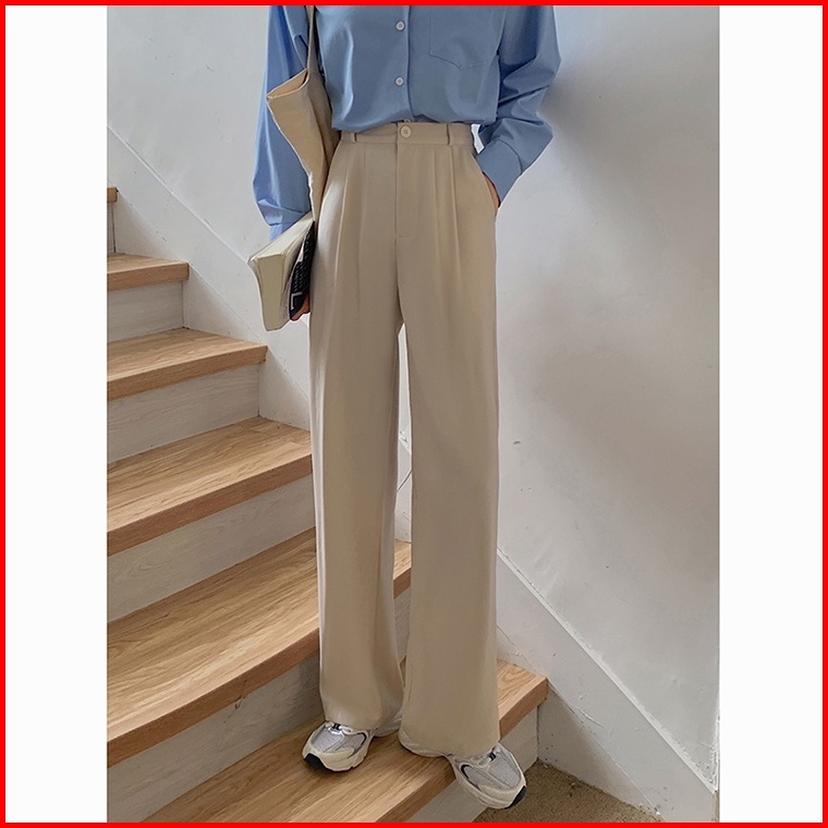 Celana Kulot Kasual Loose Celana Panjang High Waist Wanita Korea Style Hitam Straight Pants Celana Wanita