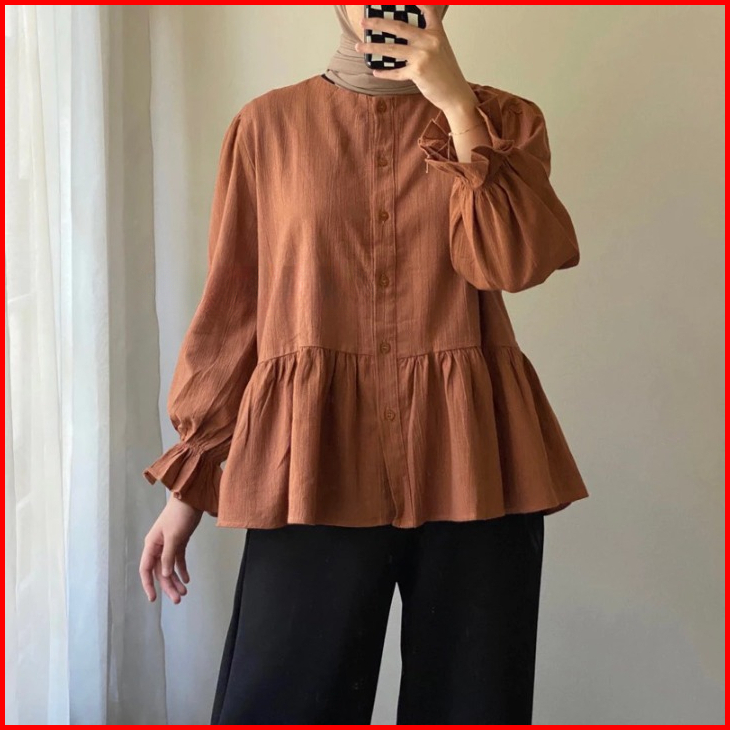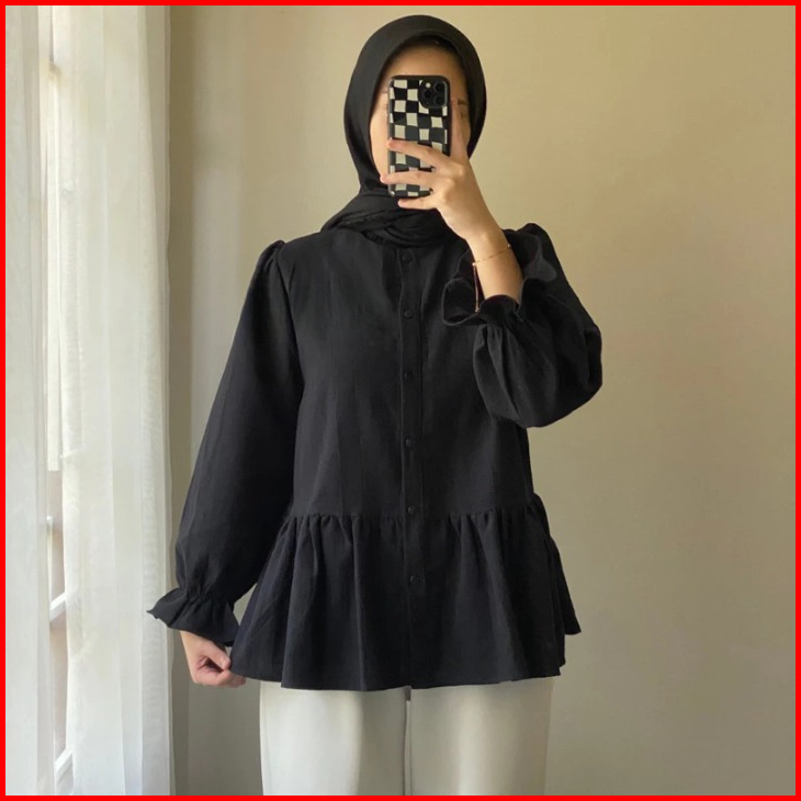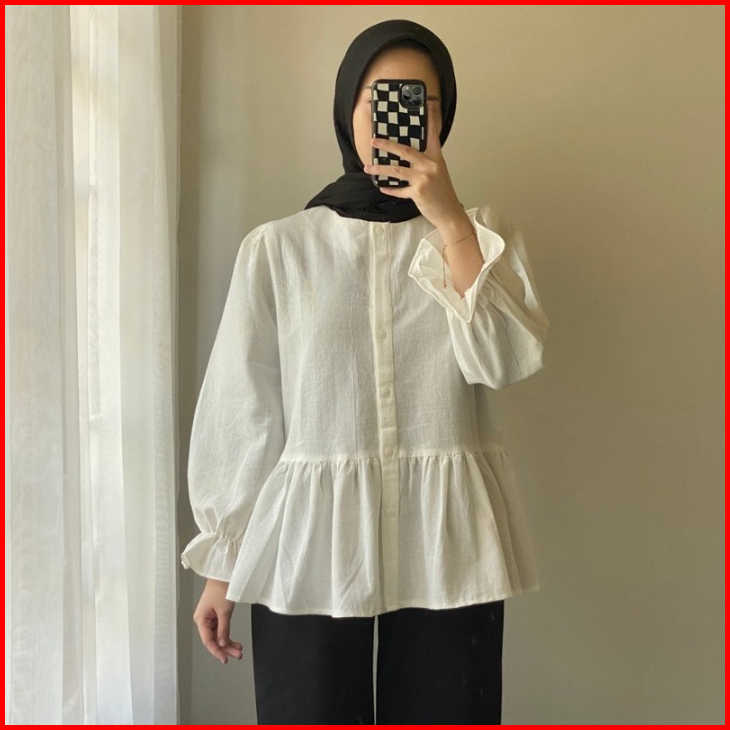 Lolly Ruffle Shirt Kemeja Oversize Linen - Atasan Wanita