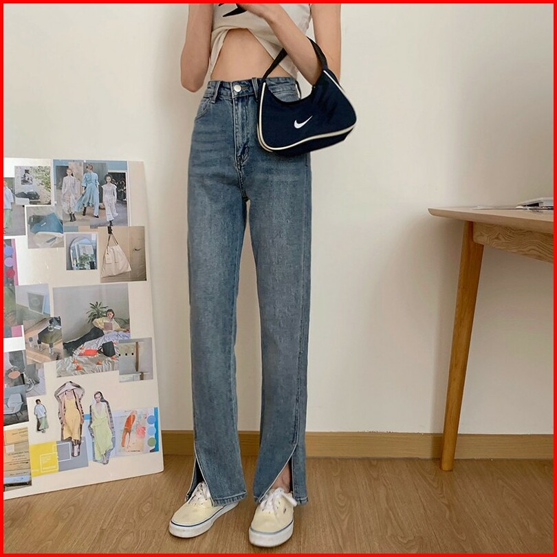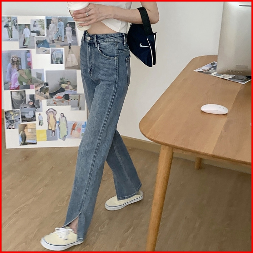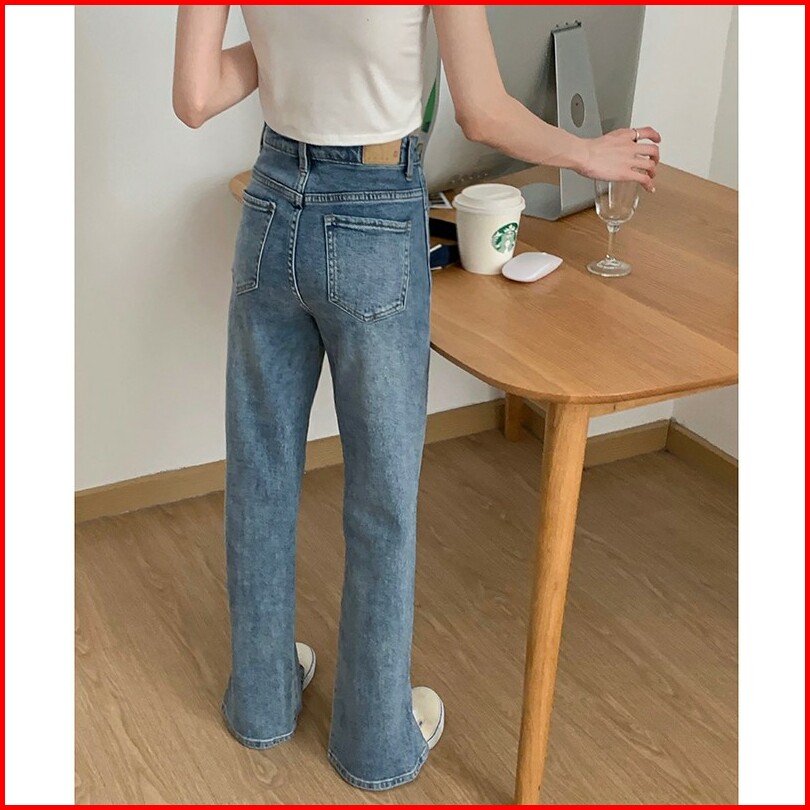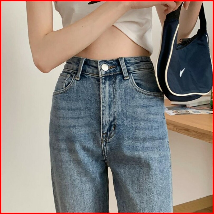 Jeans Light Blue Celana Wanita Loose High Waist Korean Style Panjang Celana Model Lonceng Wanita