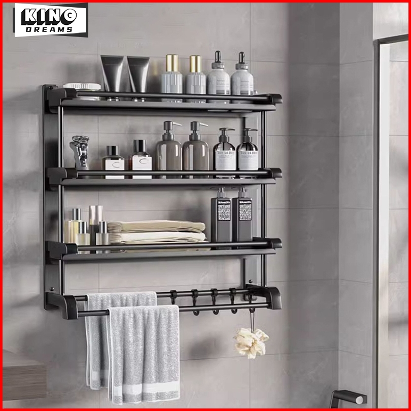 King Dreams Rak Sabun Kamar Mandi Stainless Hitam Dinding Dipasang Tanpa Harus Dilubangin Dibagian