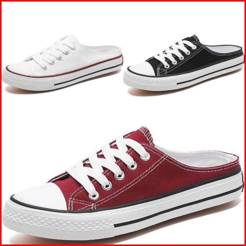 Sepatu Selop Bustong Slip On Wanita Pria Free Box Sepatu Kasual Cewek Cowok Kekinian Sepatu All Star Hitam