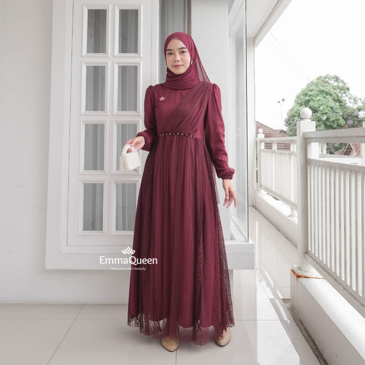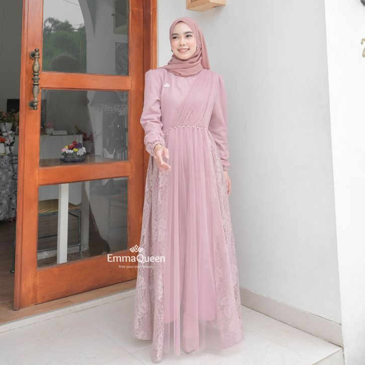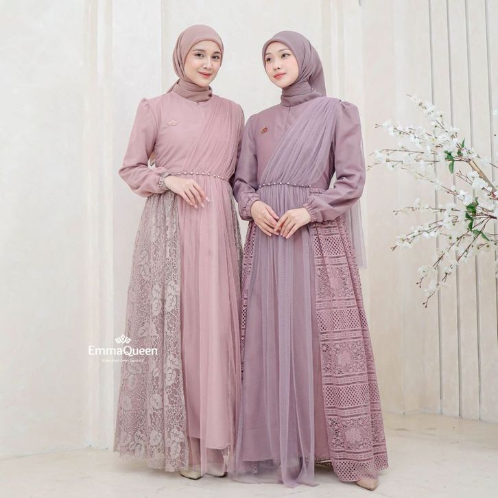 Dress Heidy gamis lebaran 2026 model gamis terbaru Kombinasi Tile Brukat mix Mutiara XS/XXL Busui