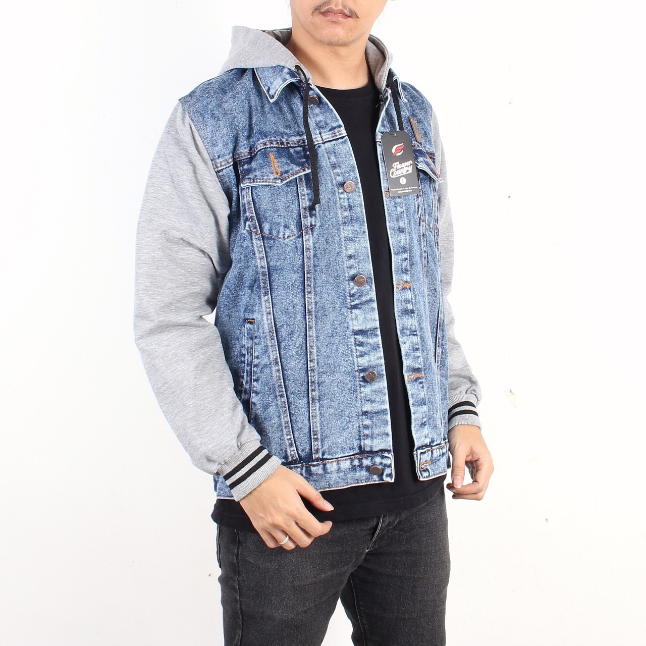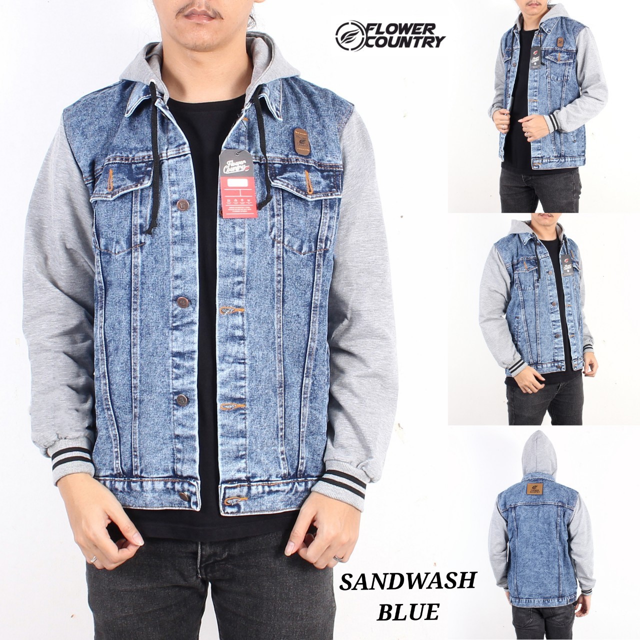 Jaket Sandwash Reglan Pria Jaket Denim Hoodie Blue Sandwash Original Adreena Store