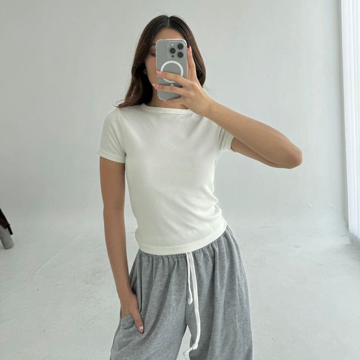 LEO TOP | Atasan Knit Wanita Korean Top Baju Knit Wanita Lengan Pendek Basic Short Sleeve