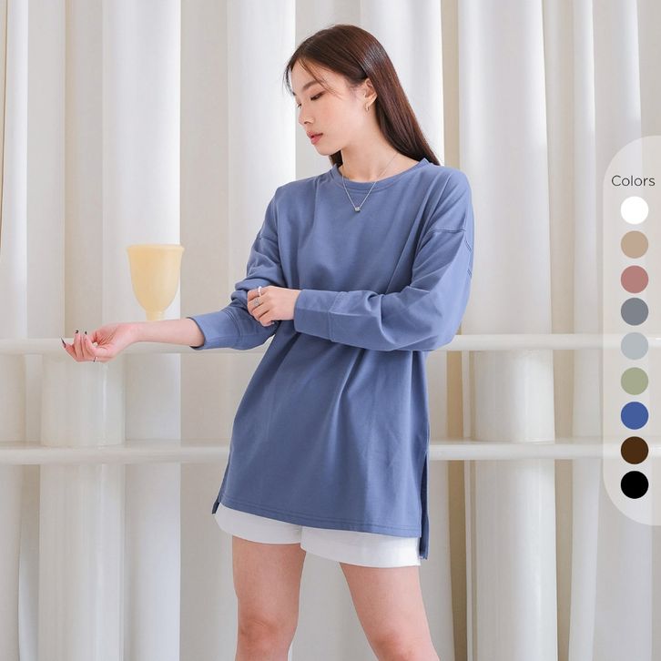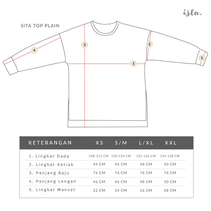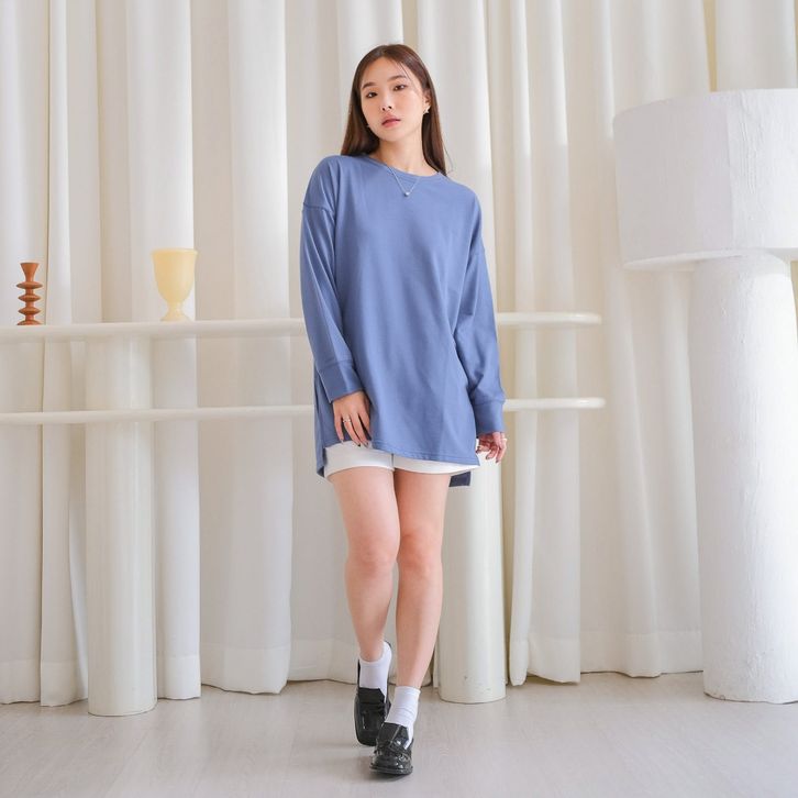 Isla Sita Top - Basic Oversize Top - T-shirt Wanita Lengan Panjang - Kaos Oblong