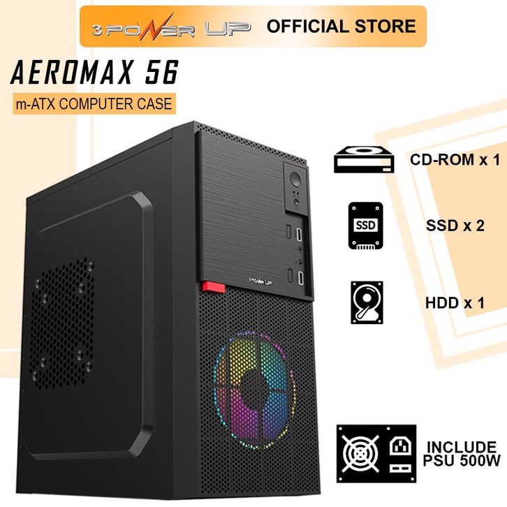TERLARISSS CASING PC 3 POWER UP AEROMAX 56 AM-560 WITH PSU 500W - M-ATX CASE
