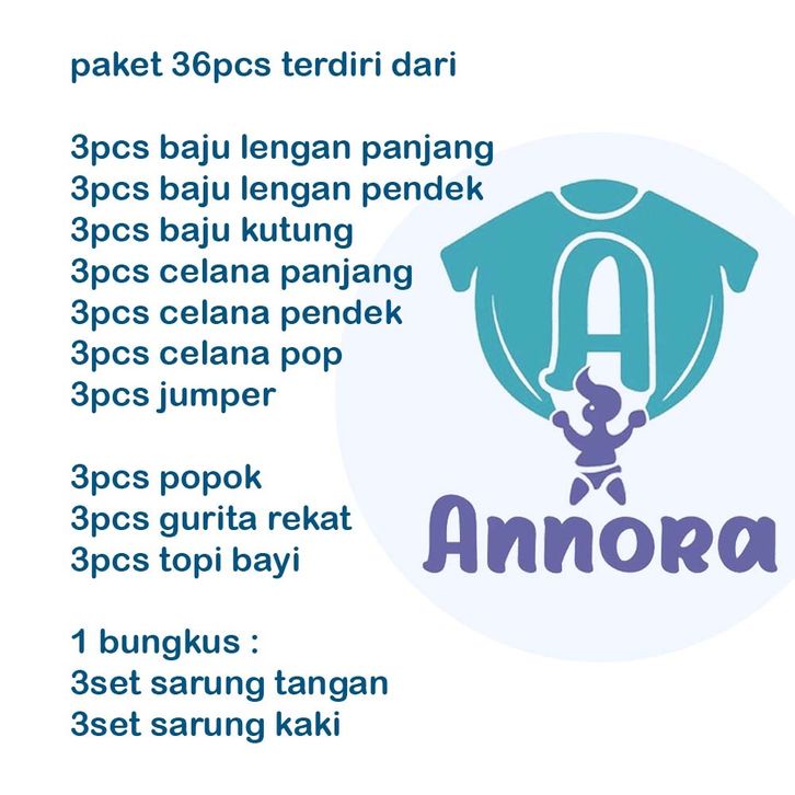 ANNORA - Paket Lahiran Lengkap 36pcs Perlengkapan Bayi Baru Lahir Newborn Seri Polos Mix