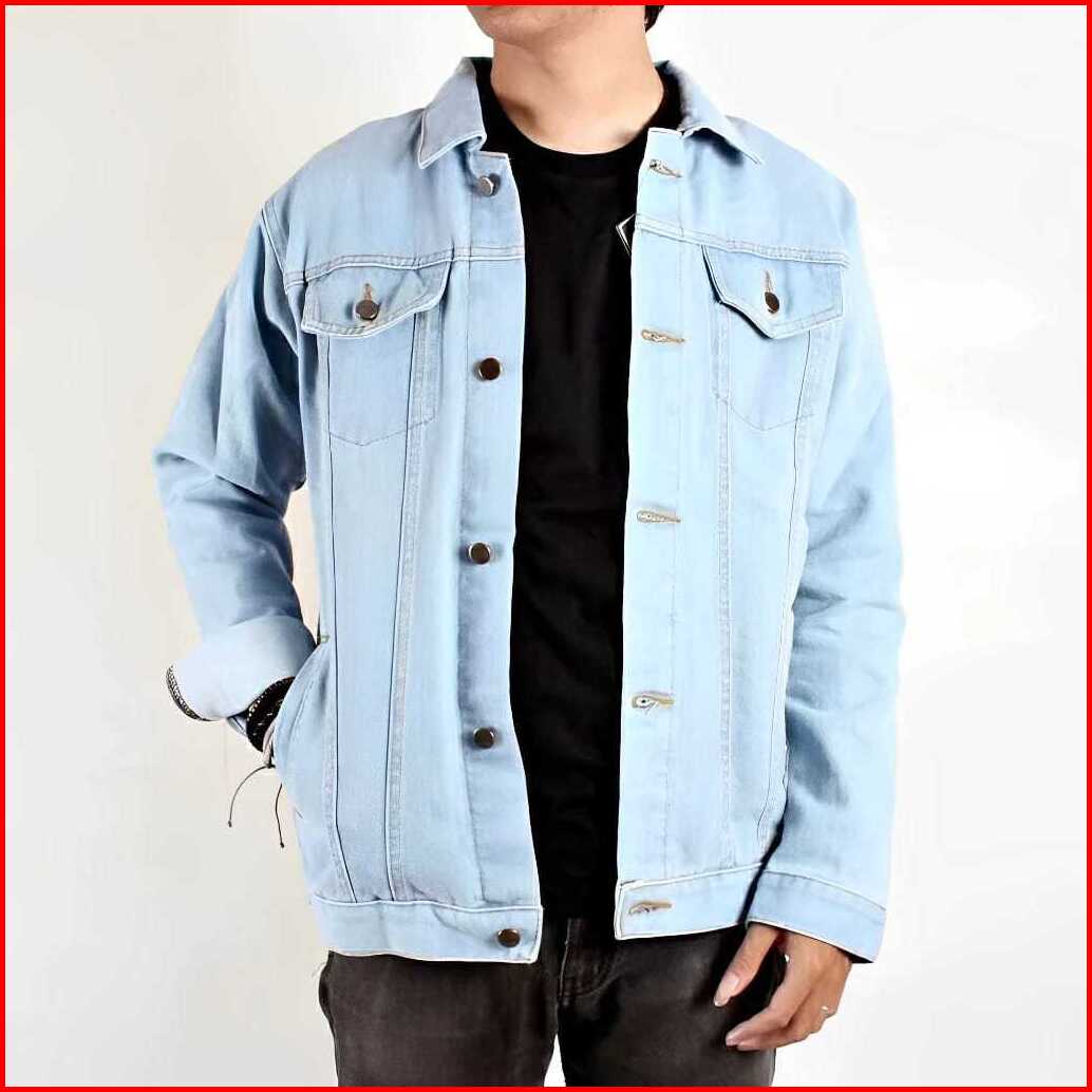 Jaket Jeans Denim Pria Polos Big Size Jumbo Xxl - Xxxxl
