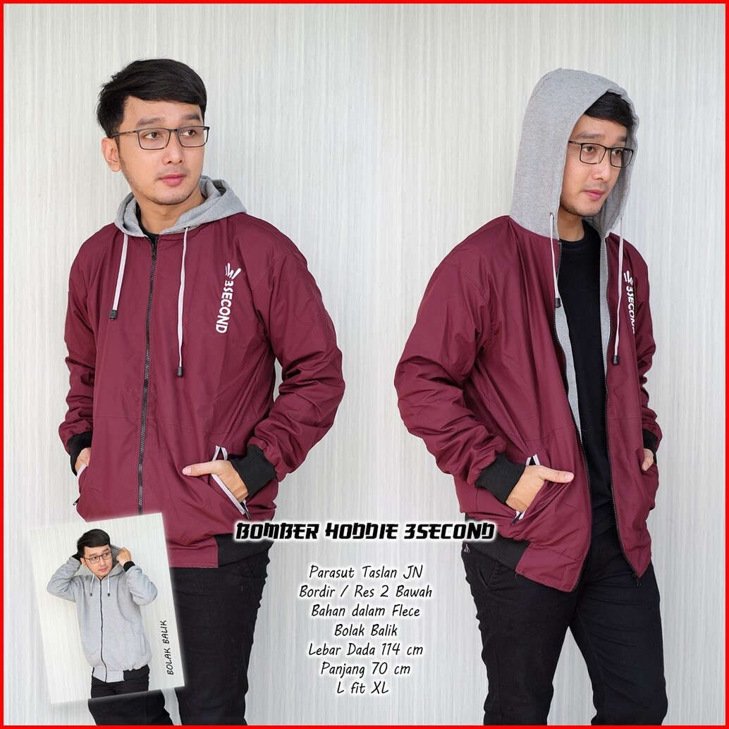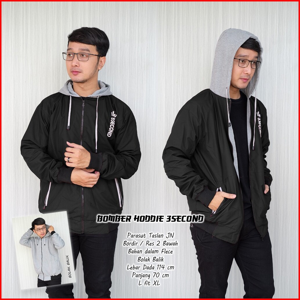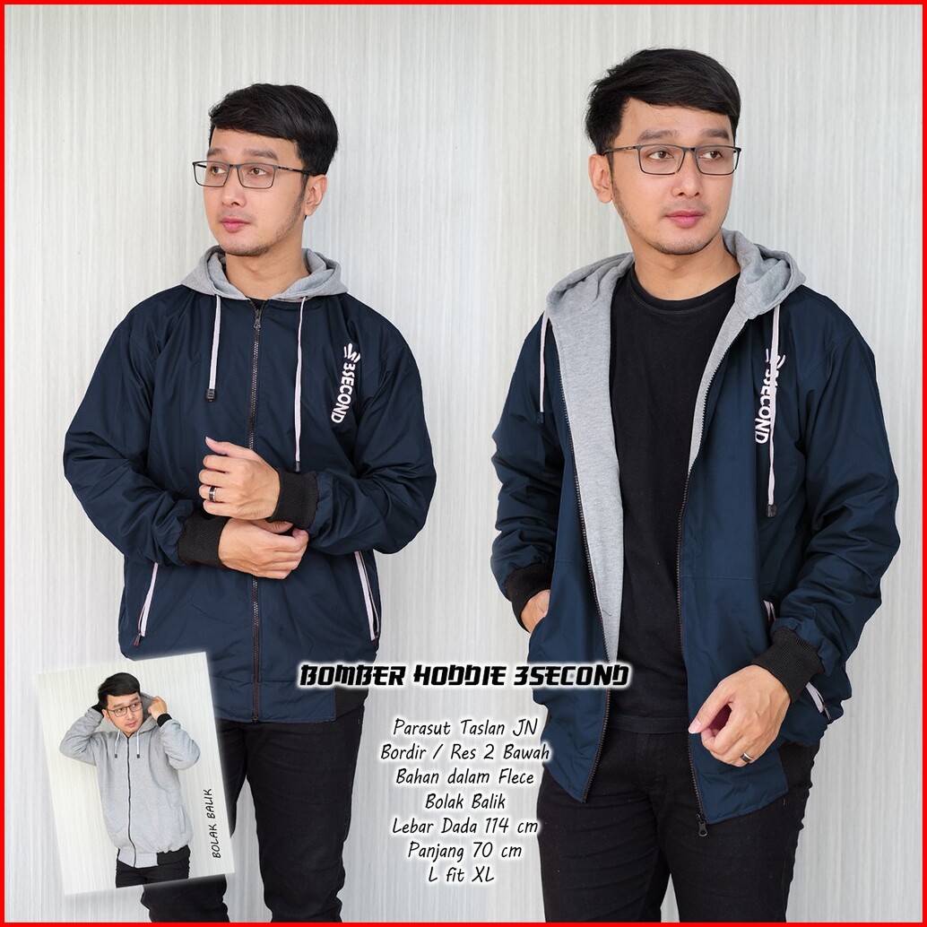 Jaket Parasut Bomber Hoddie 3s Bolak Balik Pria Zipper Hoddie Bahan Parasut Dalam Flece Size L Fit Xl Bordir