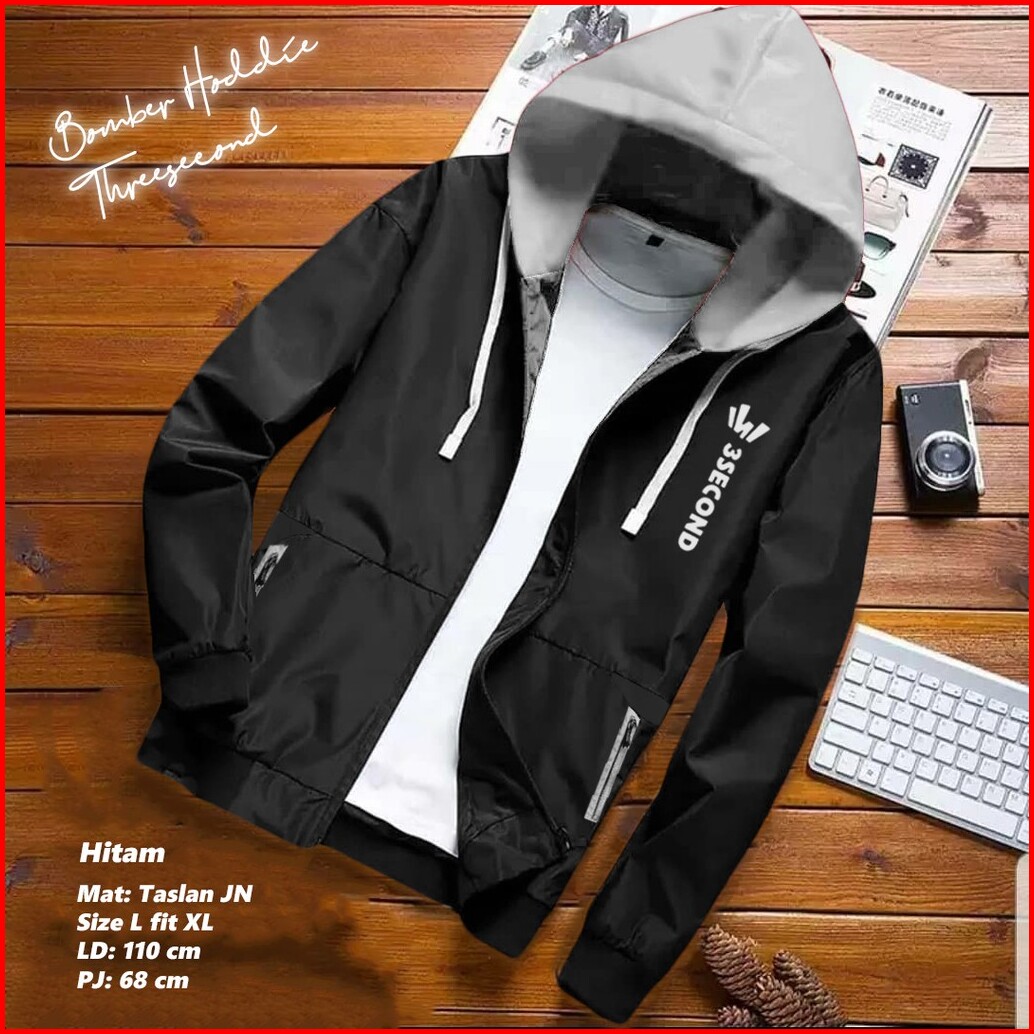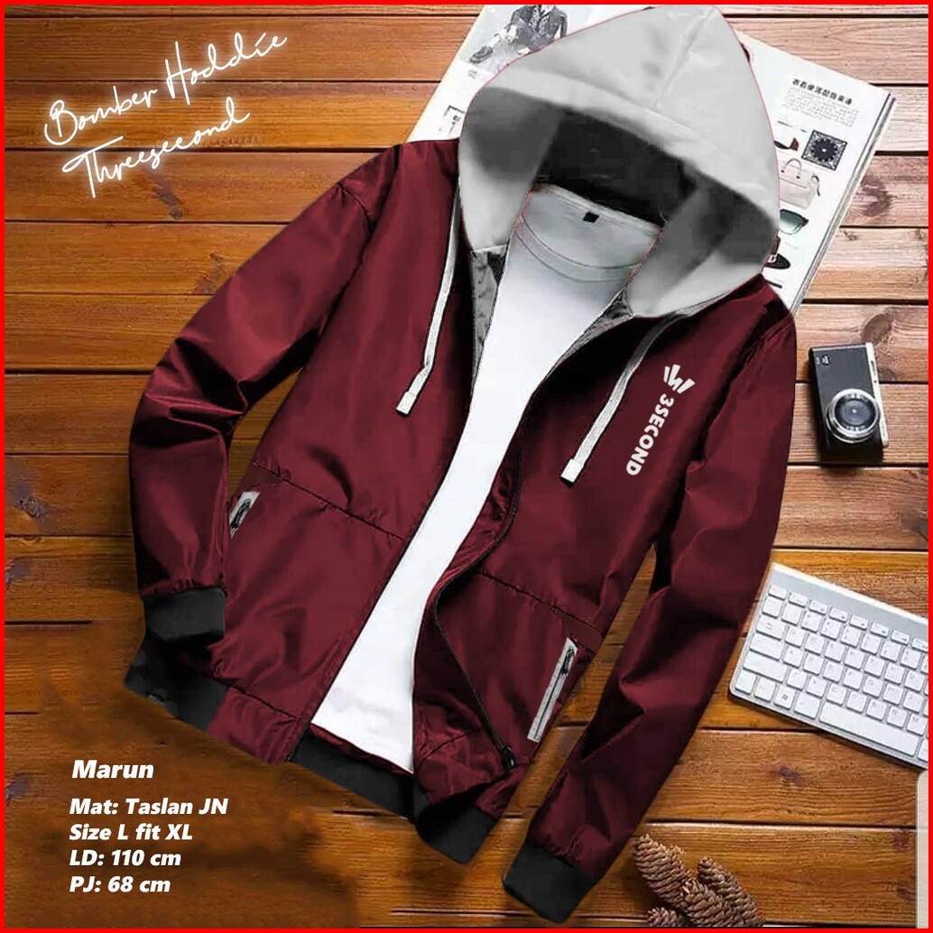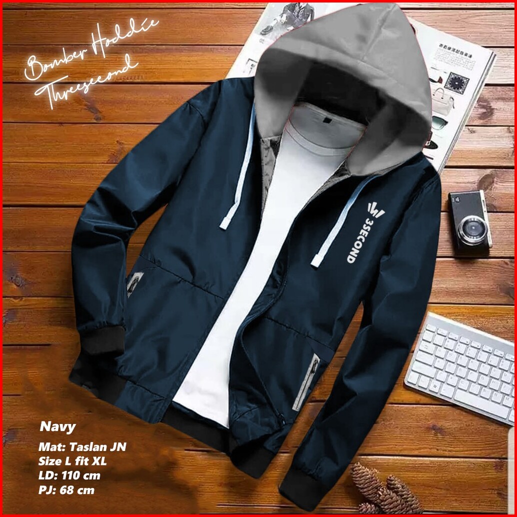 Jaket Parasut Bomber Hoddie 3s Bolak Balik Pria Zipper Hoddie Bahan Parasut Dalam Flece Size L Fit Xl Bordir