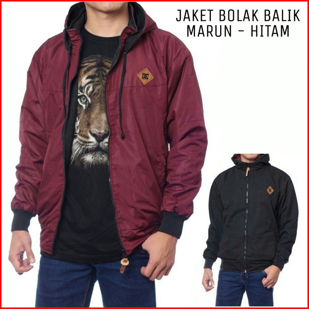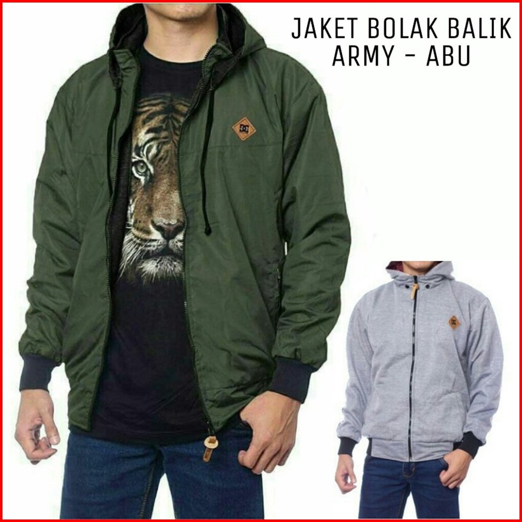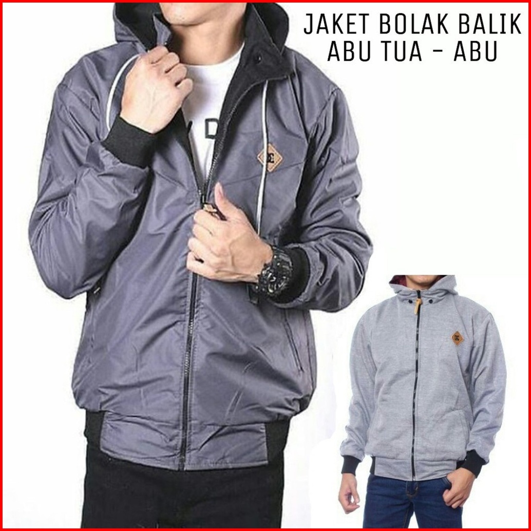 Jaket Bolak Balik Pria Bb 2in1 Parasut Fleece Size M L Xl