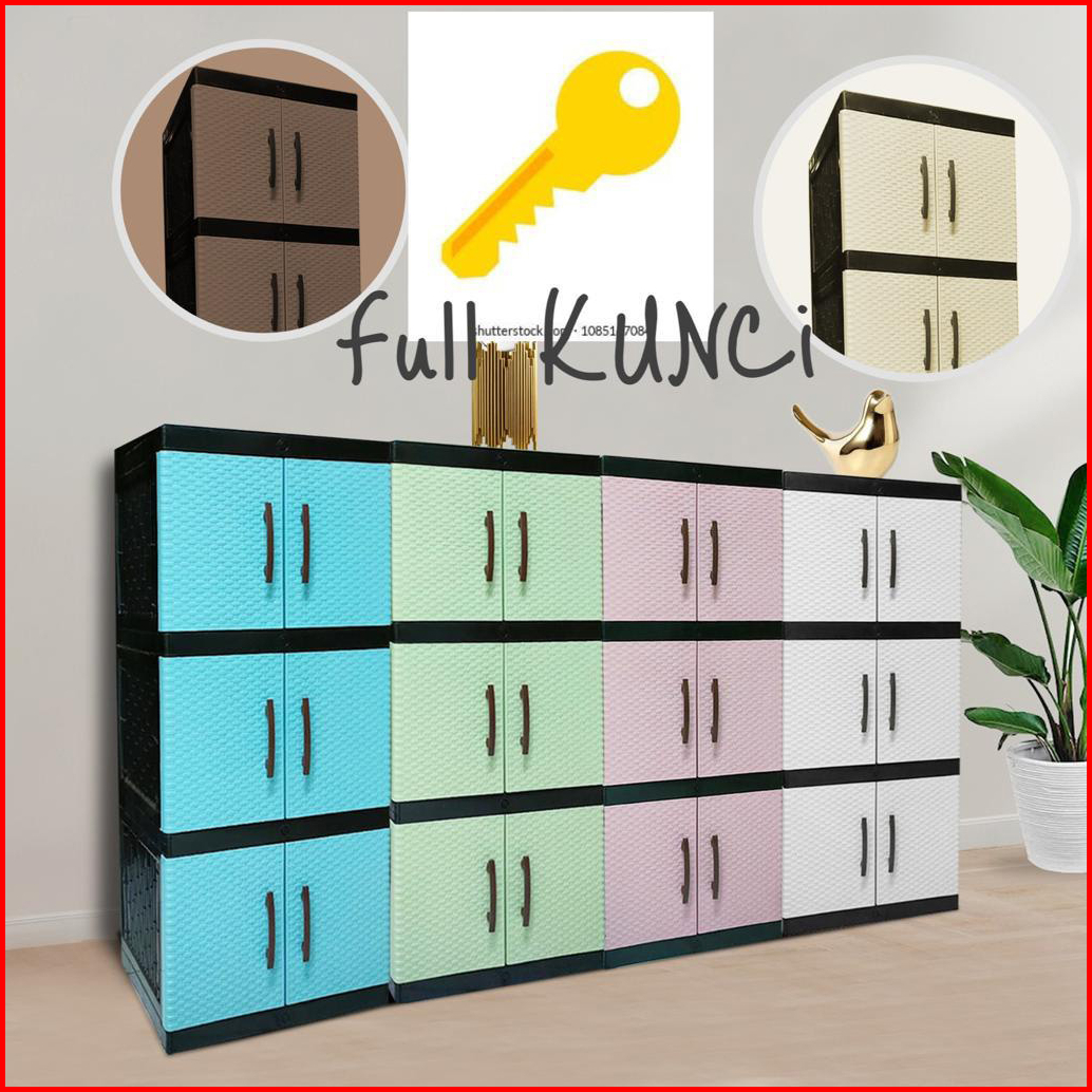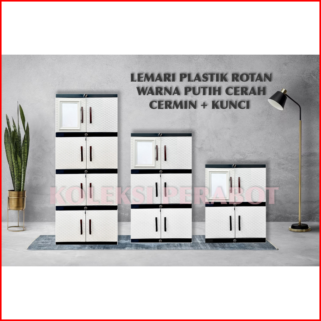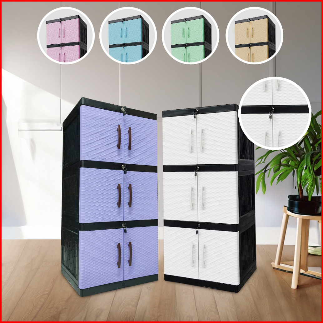Lemari Plastik Pakaian Serbaguna Susun 2 Dan Susun 3 Mini Rotan Kaca Kunci