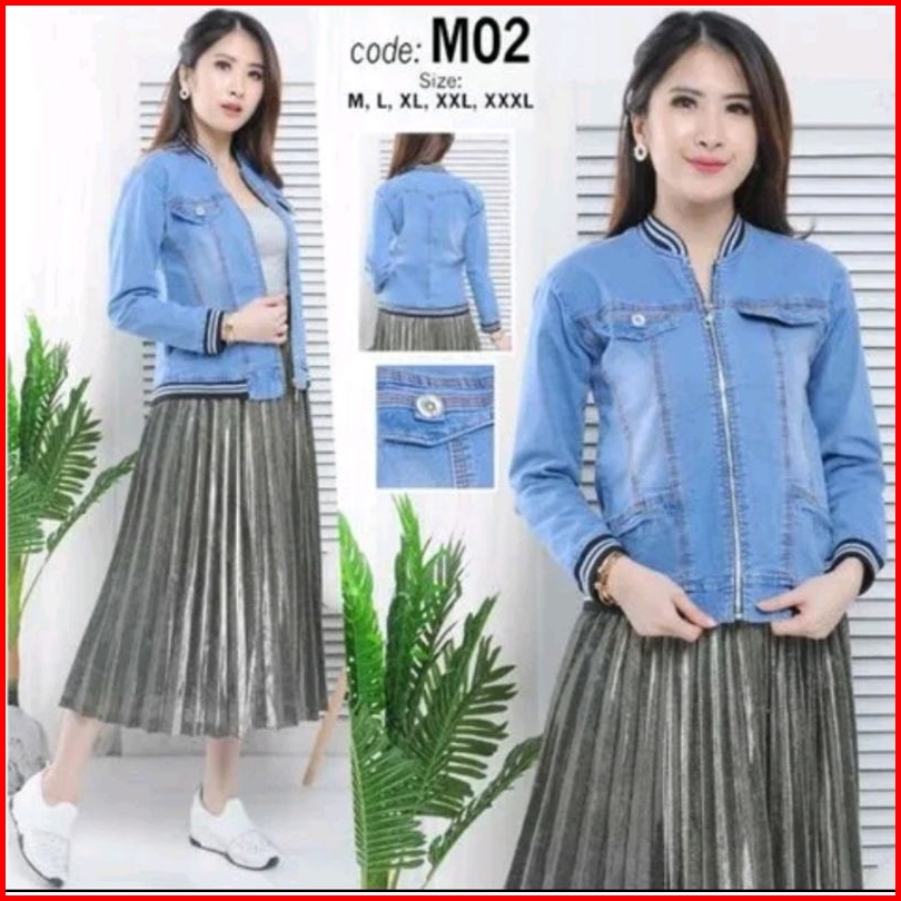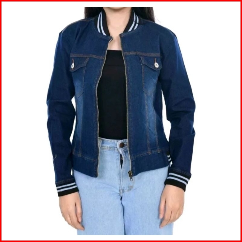 Jaket Jeans Bomber Wanita Korean Style Stretch Navy