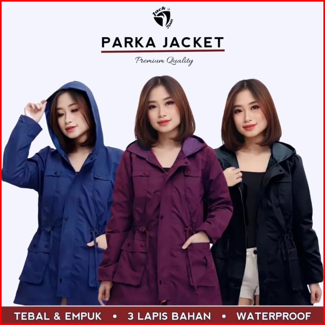 Premium 3 Lapis Jaket Parka Hoodie Waterproof Windproof Parasut 3 Lapis Proteksi Tebal Hangat Wanita Cewek Dewasa Tahan