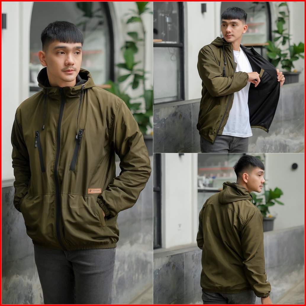 Jaket Wp Taslan Hoodie Pria Waterproof Anti Air