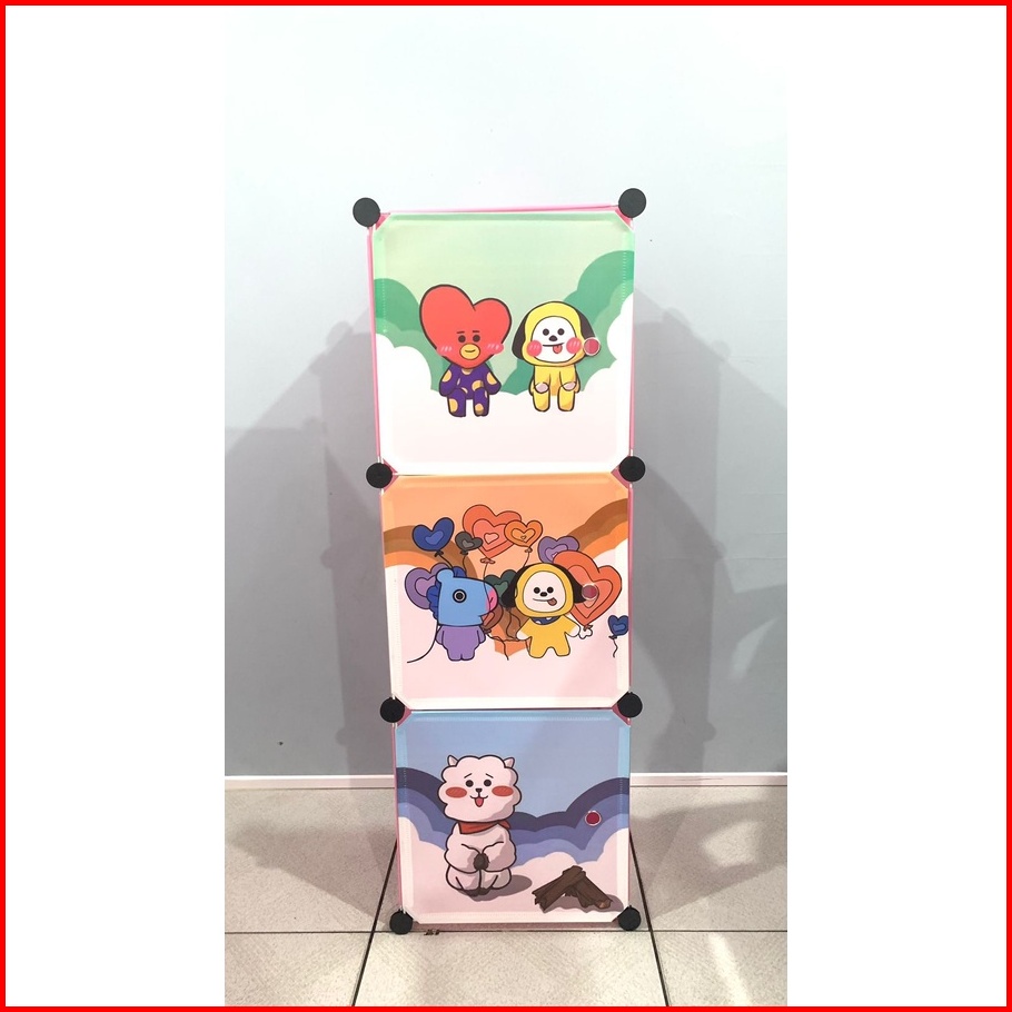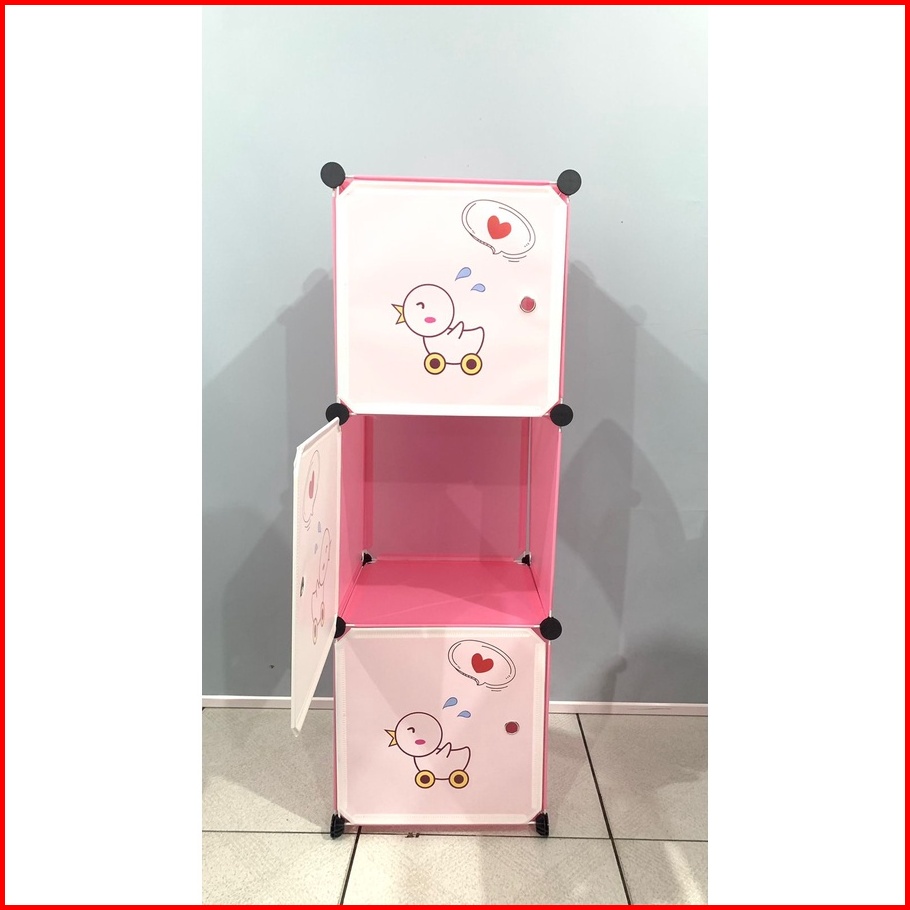 Shenar Lemari Pakaian Lemari Plastik Lemari Baju Anak Rak Buku Rak Topi 3 Kotak Pintu Susun