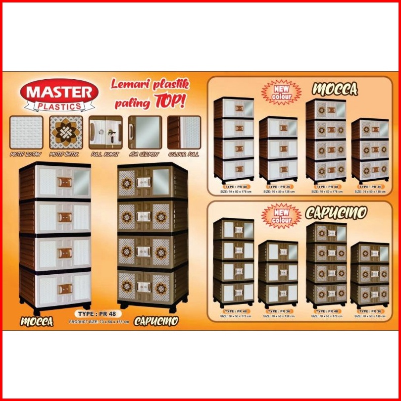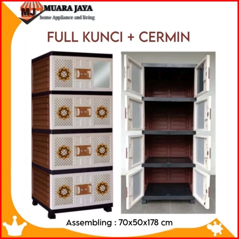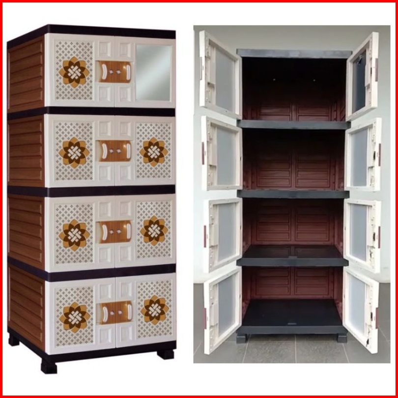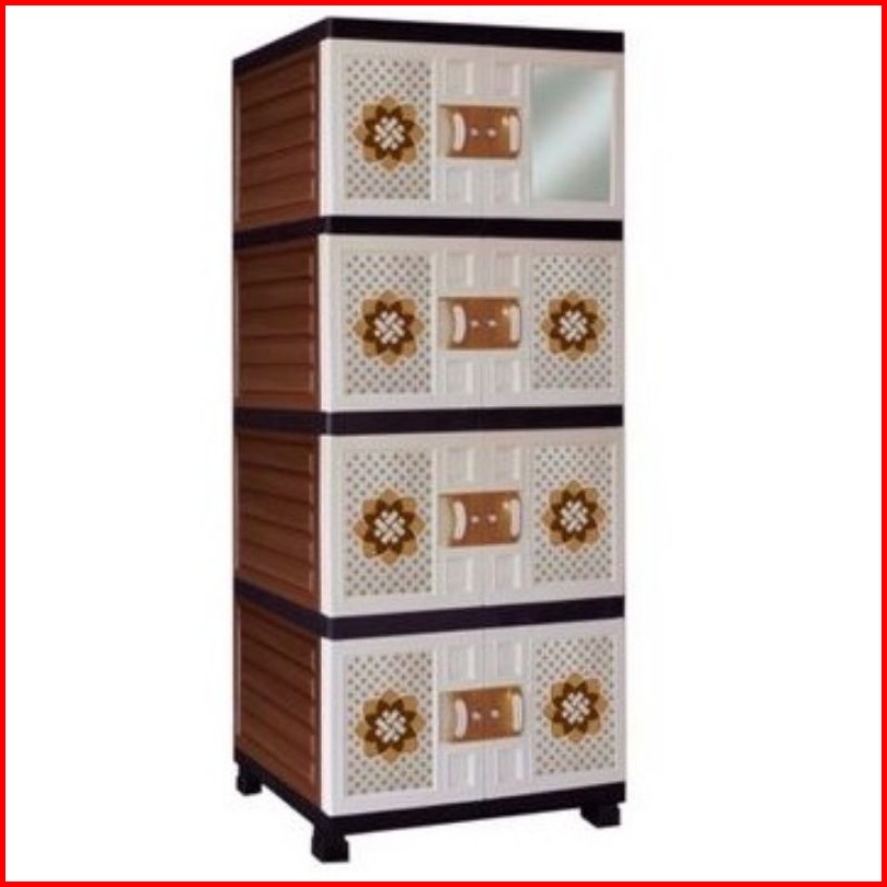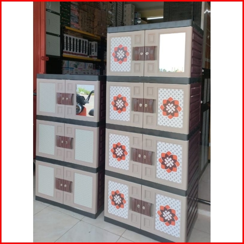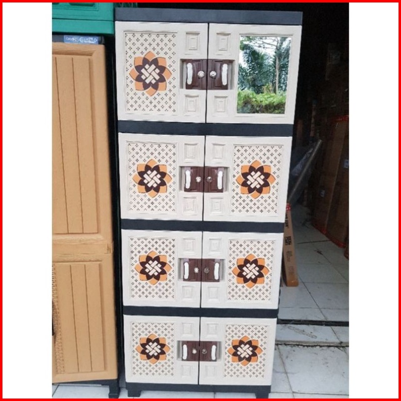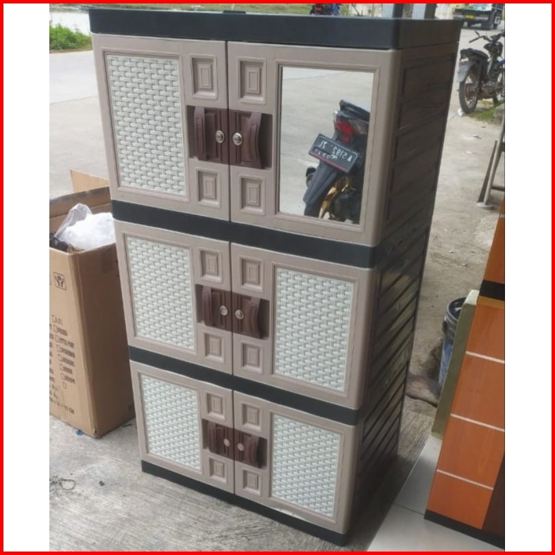 Lemari Pakaian Lemari Plastik Jumbo Motif Rotan Batik Susun 4 Cermin