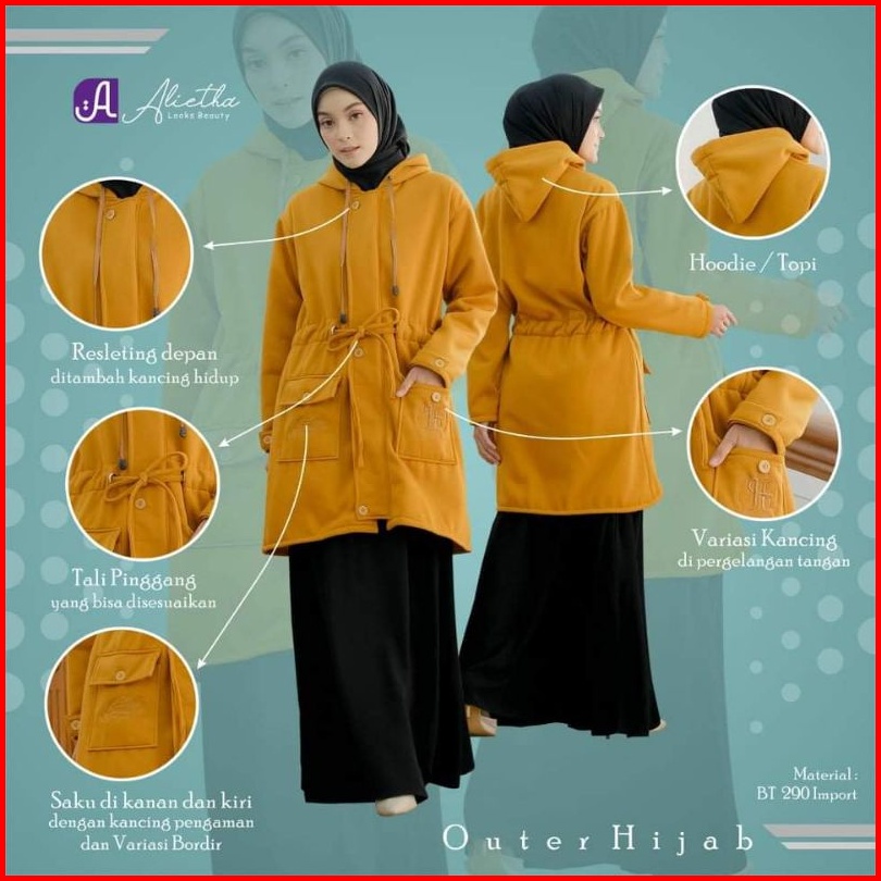 Outer Hijab Muslimah Terbaru Ori Alietha Jaket Hodie Wanita Modern Masakini
