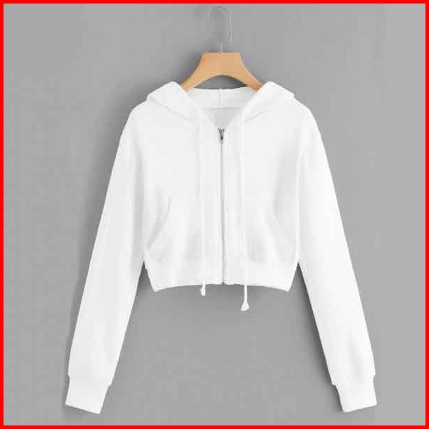 Zipper Crop Polos Jaket Hoodie Resleting Casual Untuk Wanita Tersedia Warna Hitam Dan Putih Ukuran S M L Xl Xxl 3xl 4xl