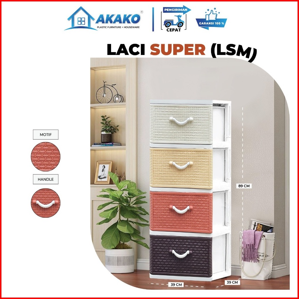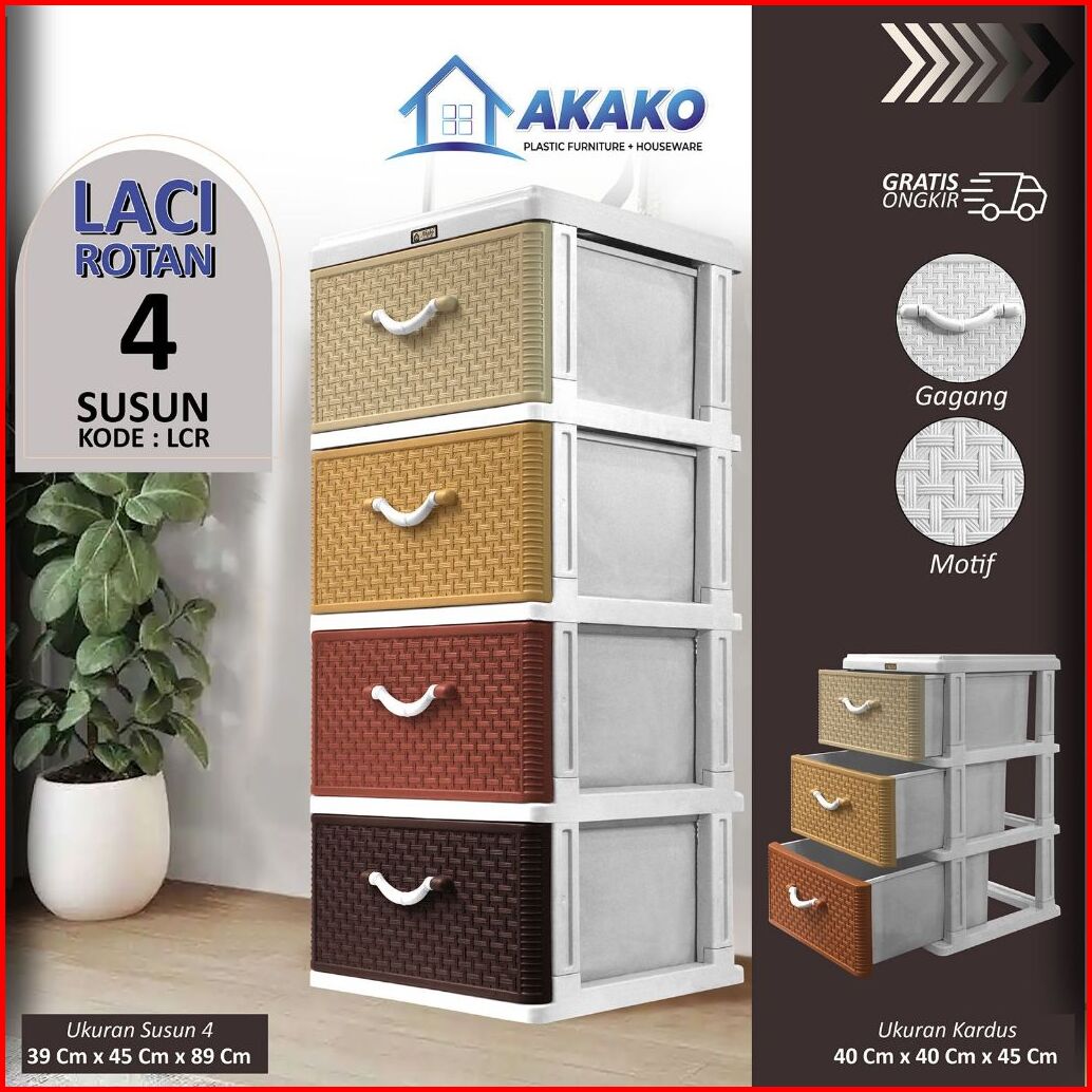 Akako - Lemari Laci Plastik Motif Rotan 4 Susun New Item Lsm 4