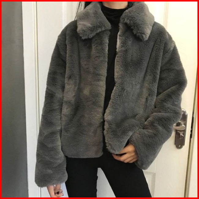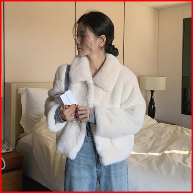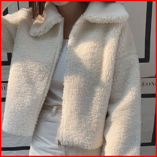 Jaket Fuzzy Crop Wanita Bulu Fur Warm Coat Sherpa Outwear