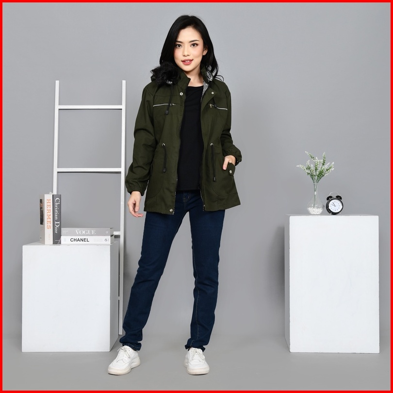 Jaket Parka Cewe Kekinian Jumbo Panjang Bahan Baby Canvas Ukuran M Sampai 4xl