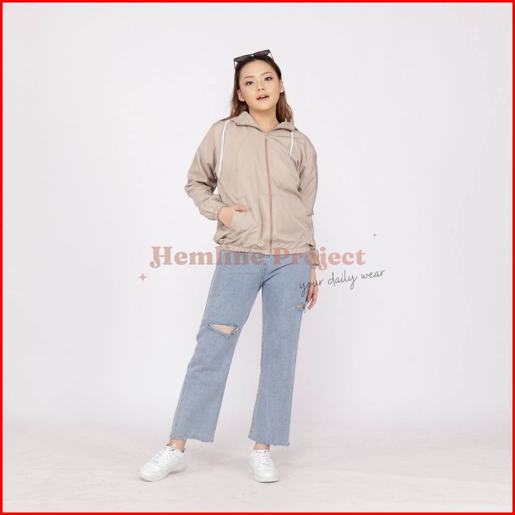 Aima Jaket Khaki - Jaket Parasut Hoodie Wanita