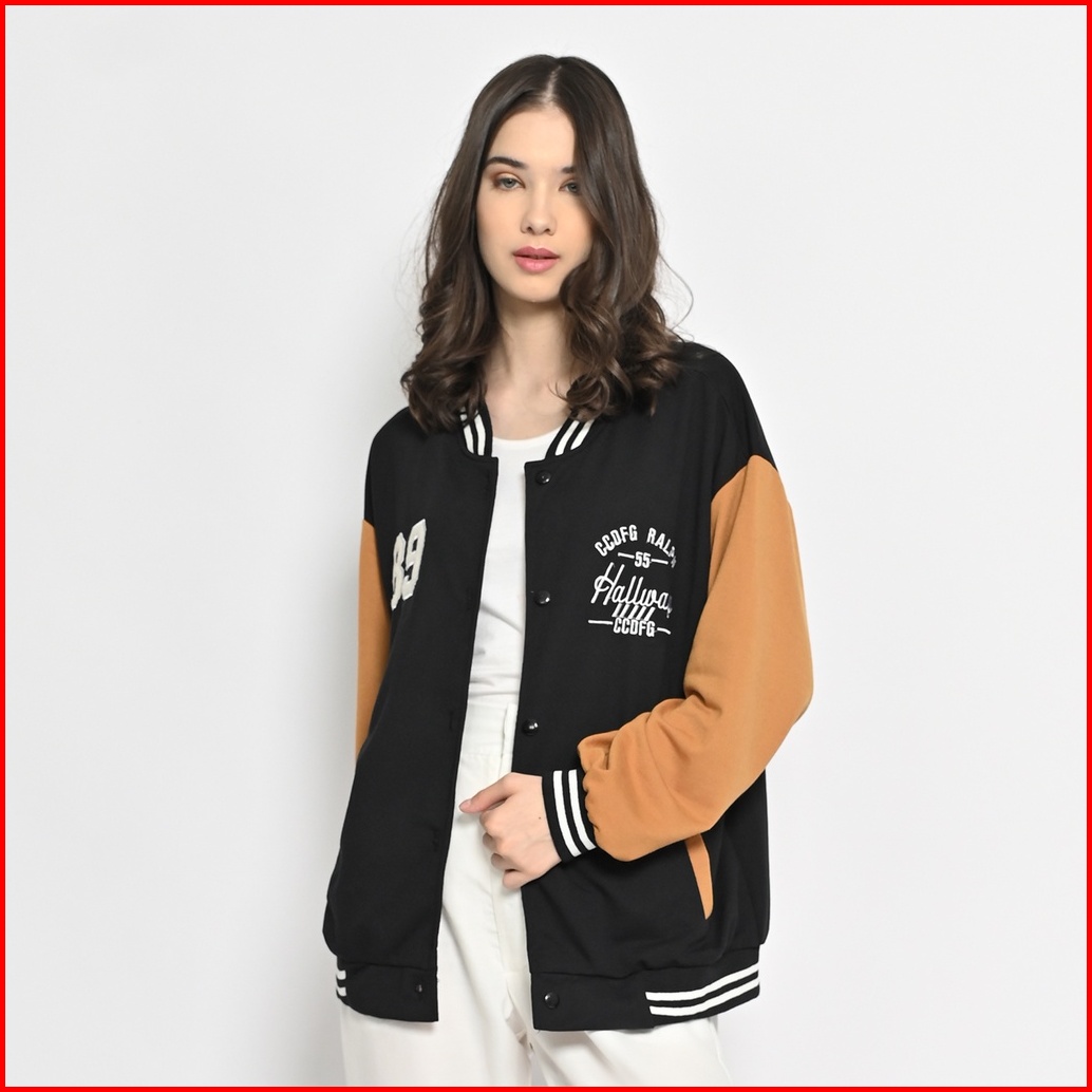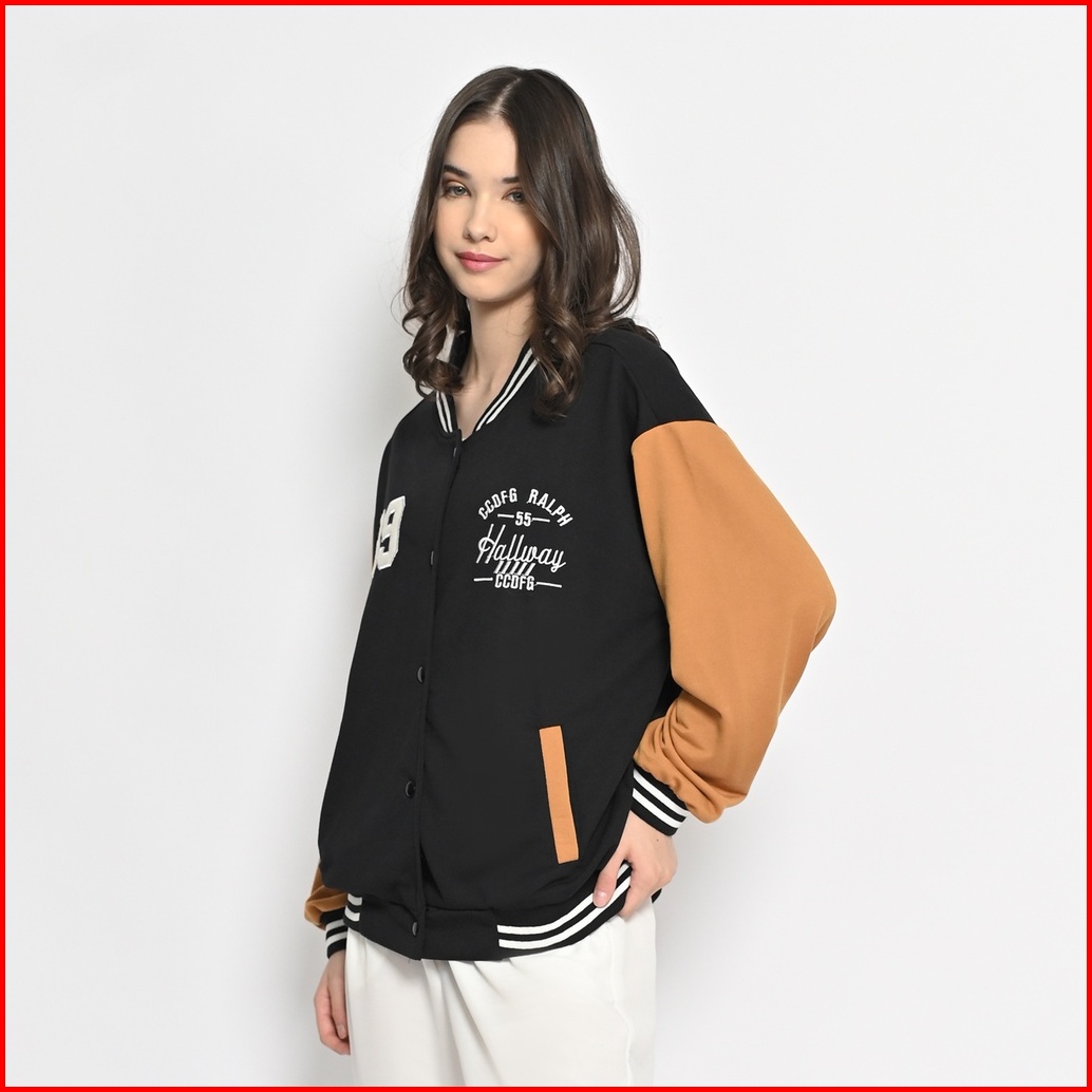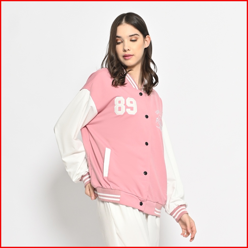Queentin Jaket Varsity Wanita 0228 Baby Tery Polyester Embroidered Baseball Jacket Lengan Panjang