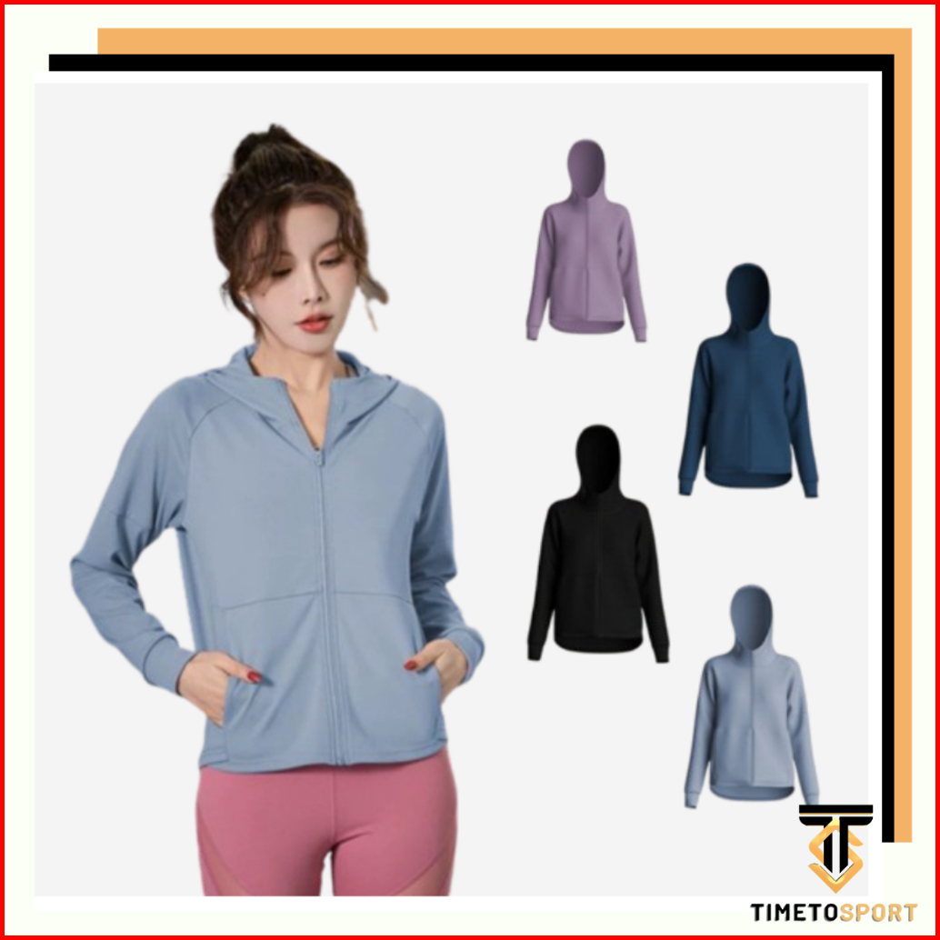 Timetosport Jaket Wanita Hoodie Zipper Bahan Mesh Resleting Untuk Yoga Gym Lari Fitness 1070