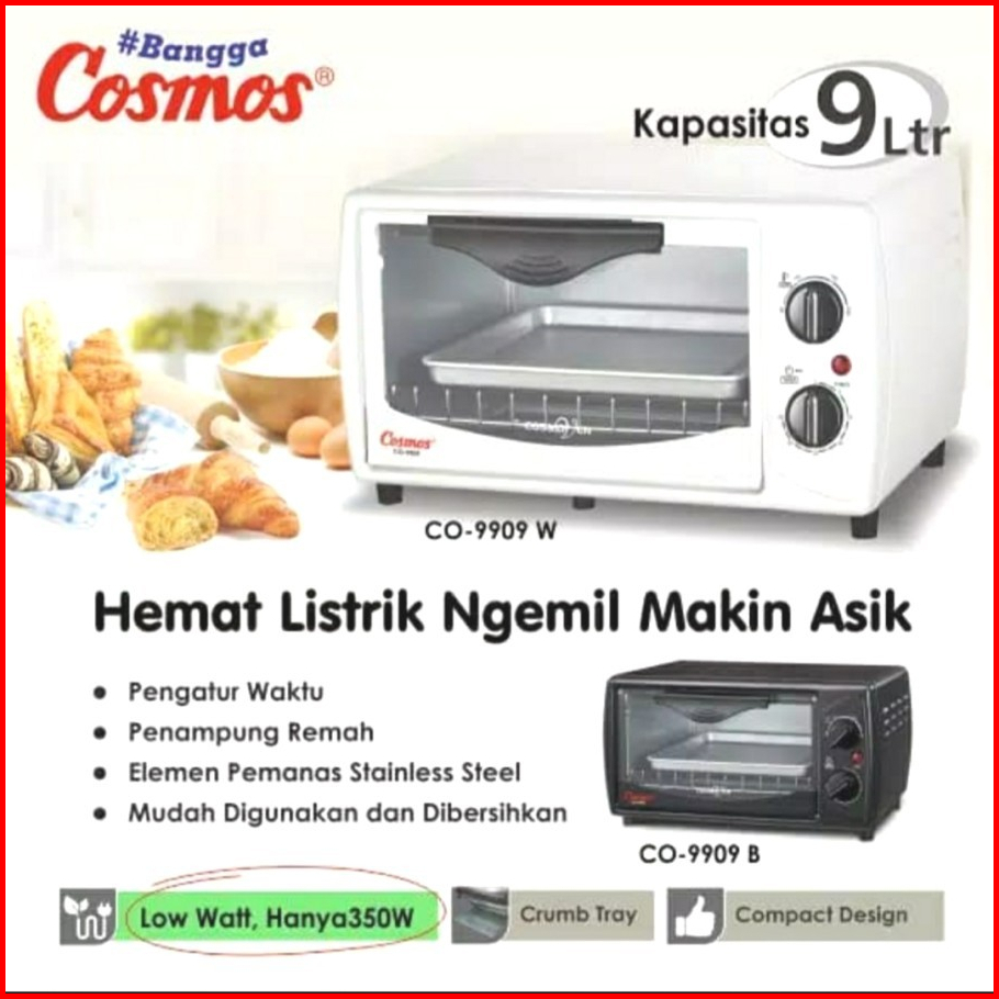 Cosmos Oven Listrik 9 Liter Oven Low Watt Co 9909 Hitam Putih - Garansi Resmi 1 Tahun