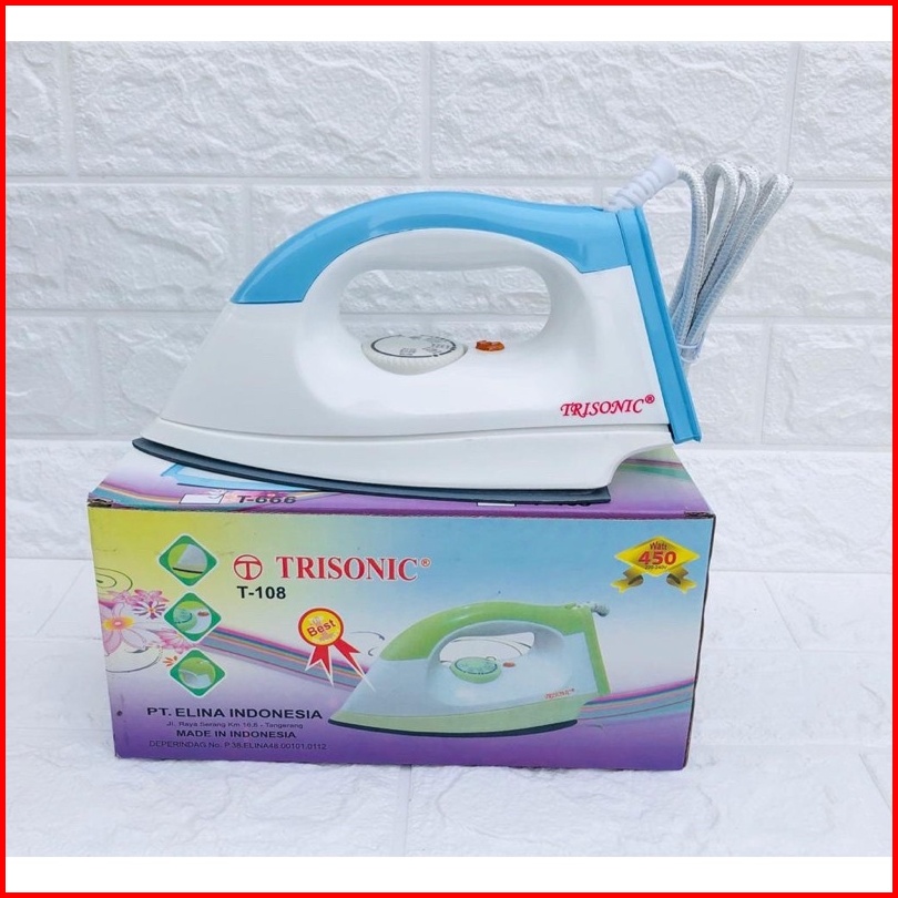 Setrika Strika Gosokan Teflon Trisonic T-108 Sakura Murah Putih Biru