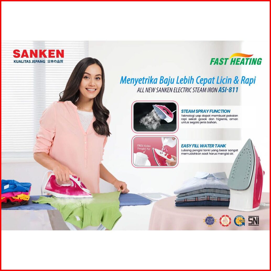 Sanken Setrika Uap Asi-811pi Steam Iron Pink