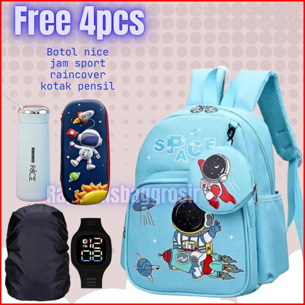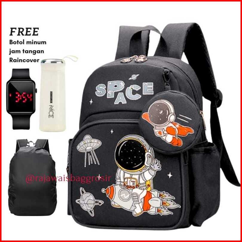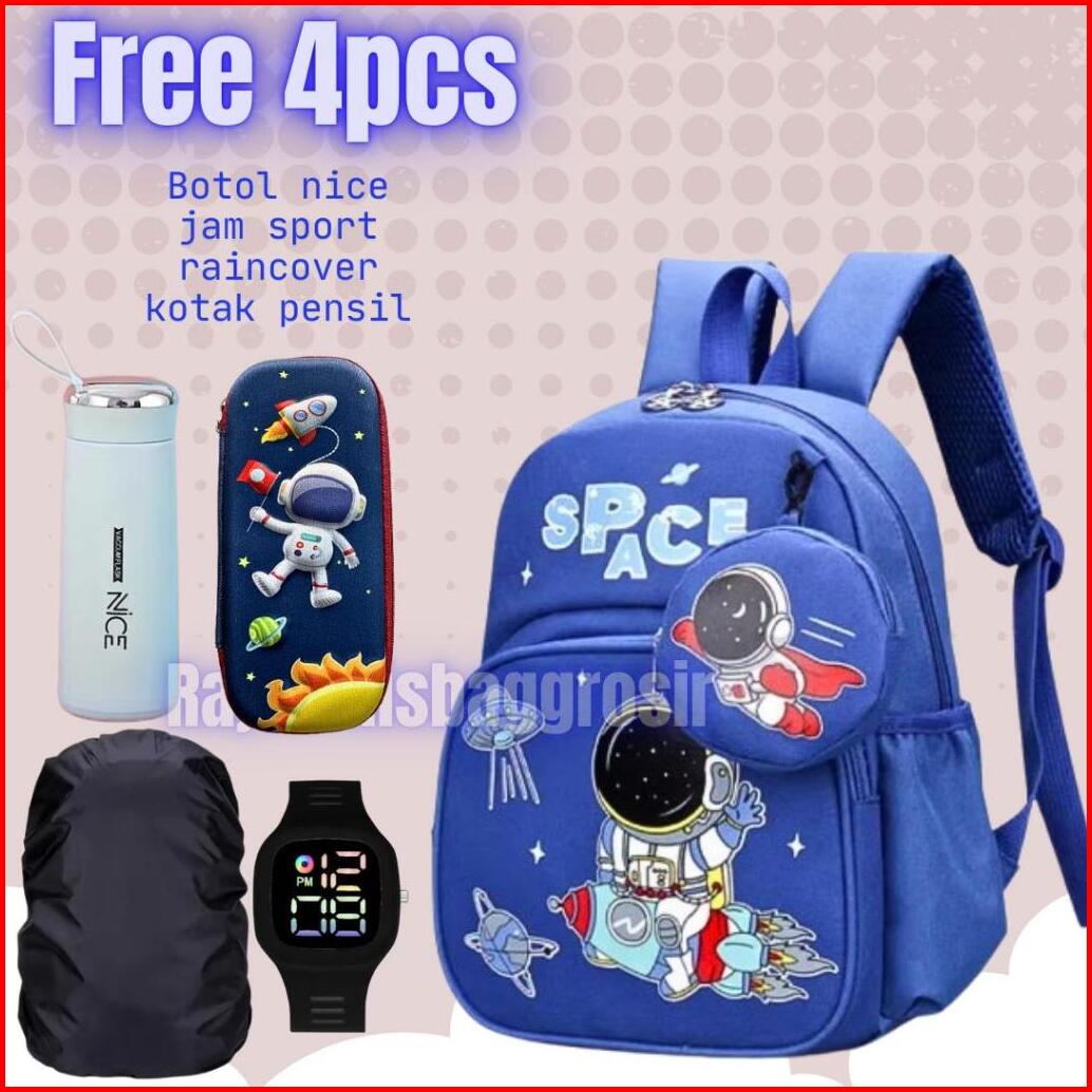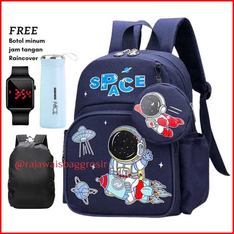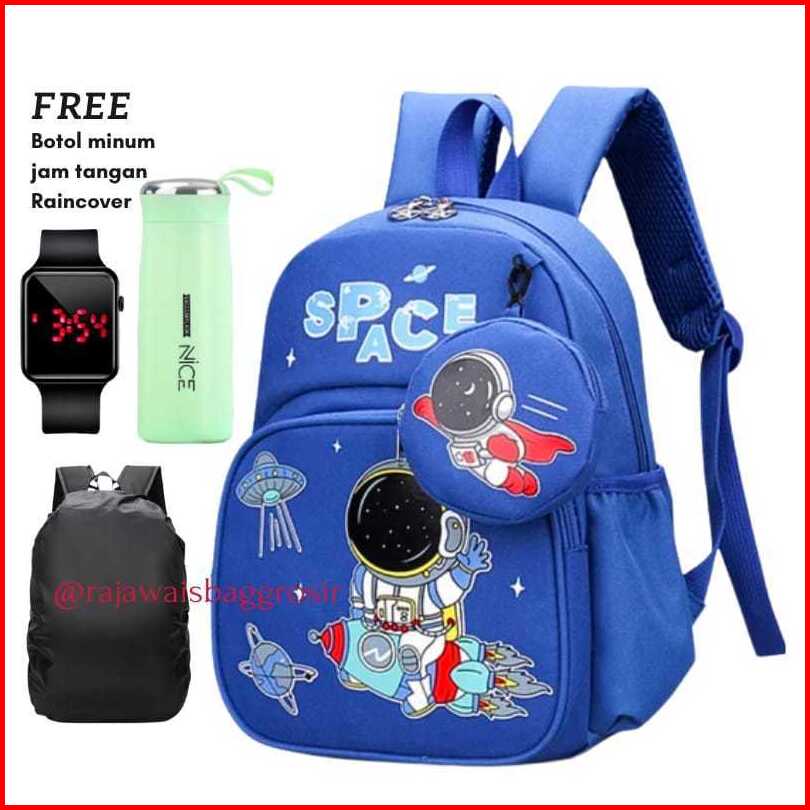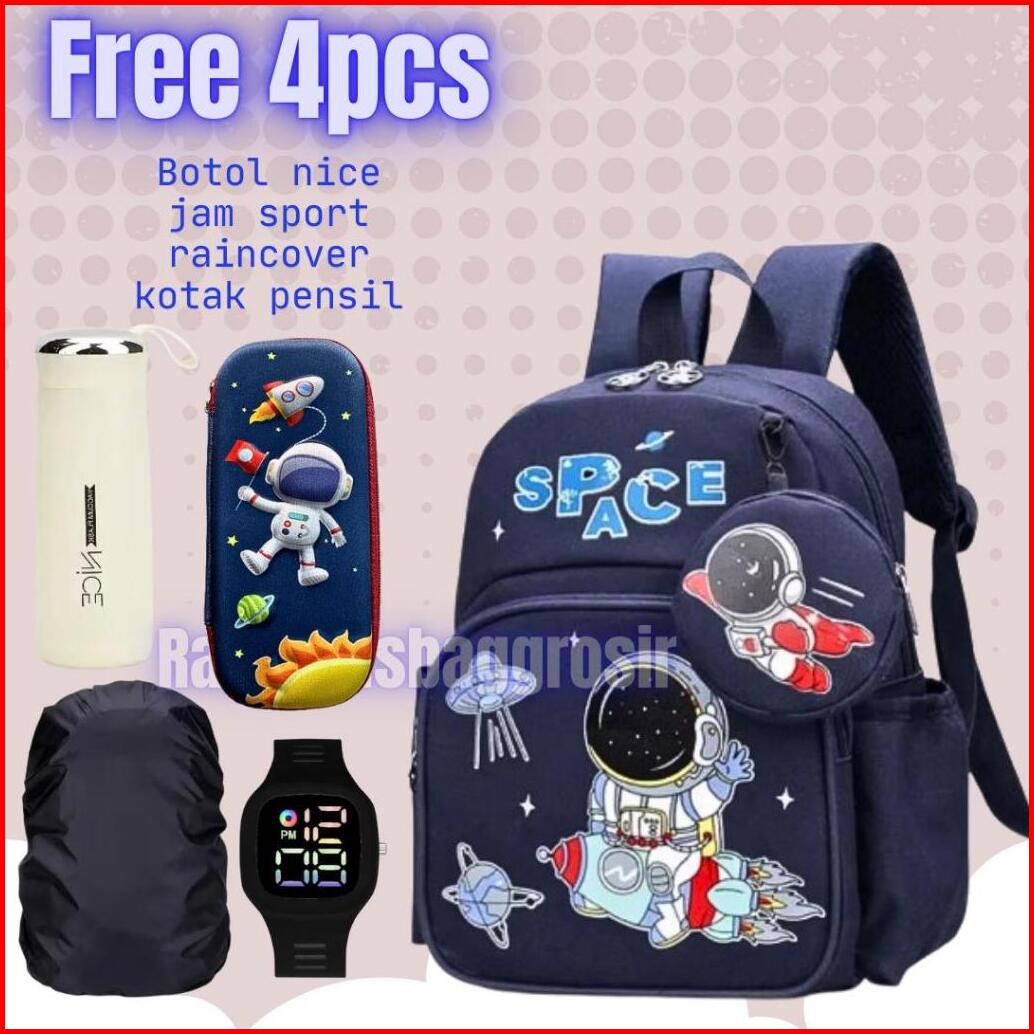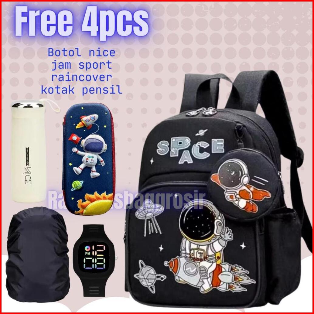Tas Ranse Sekolah Anak Laki-laki Karakter Astronot Backpack Sekolah Sd Smp Sma Free Botol Minum Free Jam Tangan Free Pel