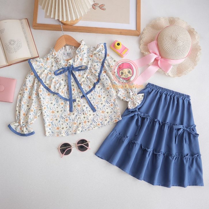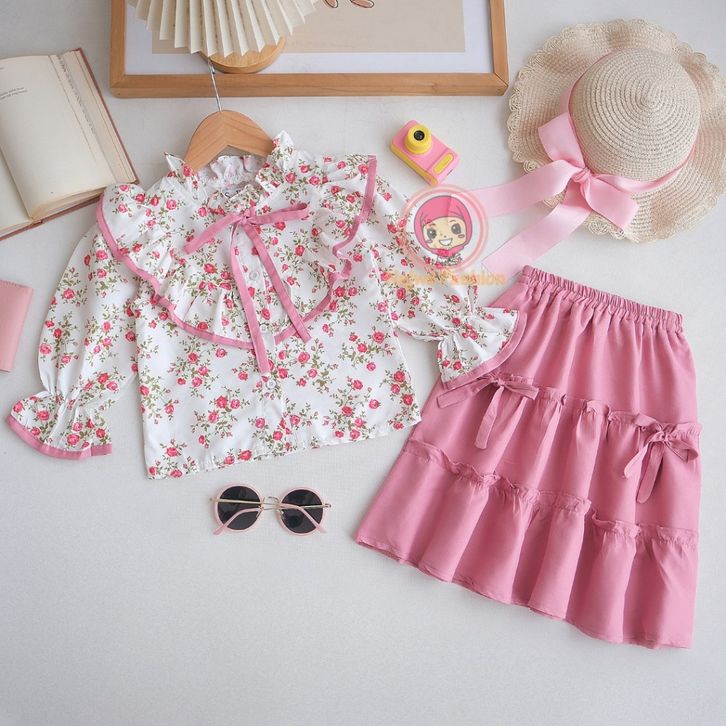 Setelan Anak Perempuan Zunaira Motif Bunga Model Terlaris / Fashion Oneset Anak Perempuan Atasan dan Rok