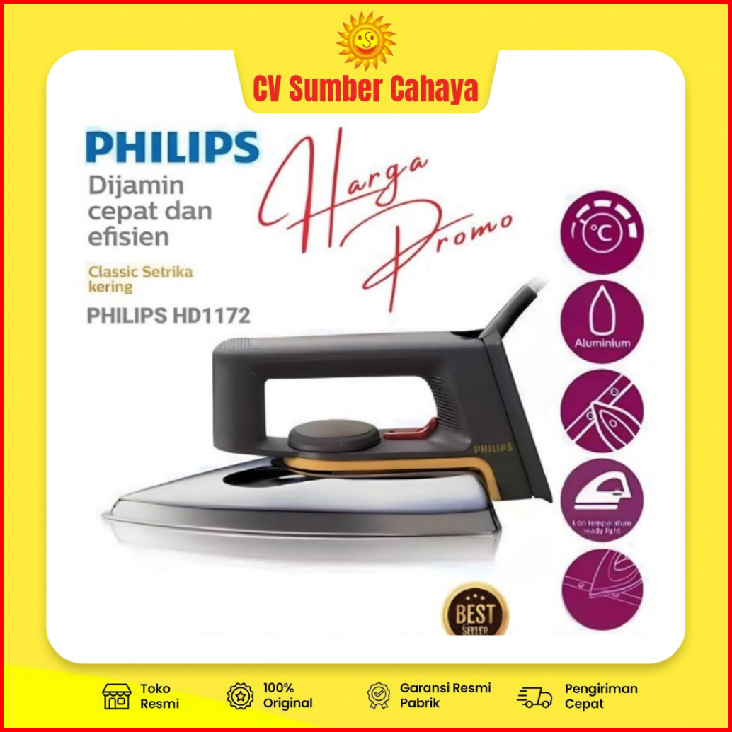 Setrika Philips Dry Iron Classic Hd-1172 Hd 1172 Hd1172