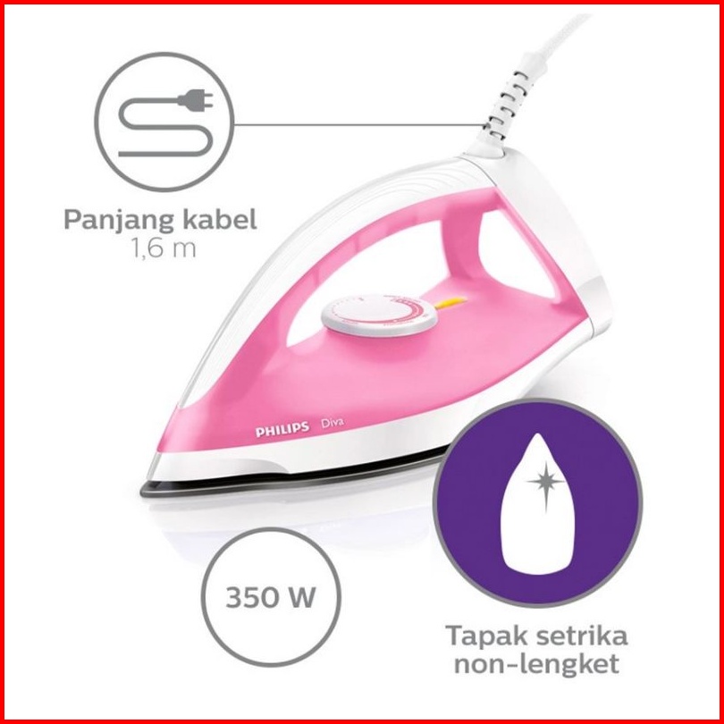 Philips Diva Dry Iron Gc122 47 Setrika Kering 350watt - Pink Bandung