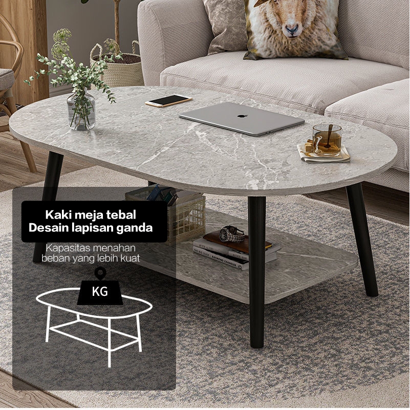 MEJA RUANG TAMU MARMER 100X50X42CM 2 TINGKAT MINIMALIS MODERN AESTETHIC KOPI UNIK BERKUALITAS MURAH