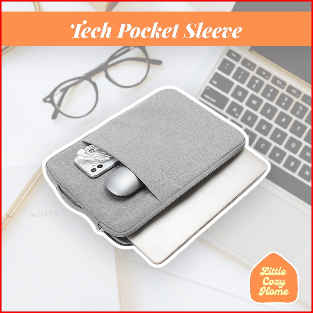 Tech Pocket Laptop Sleeve 13 14 15 15.6 Inch Tas Laptop Sarung Pouch Cover Komputer Leptop Multifungsi Macbook Air Pro C