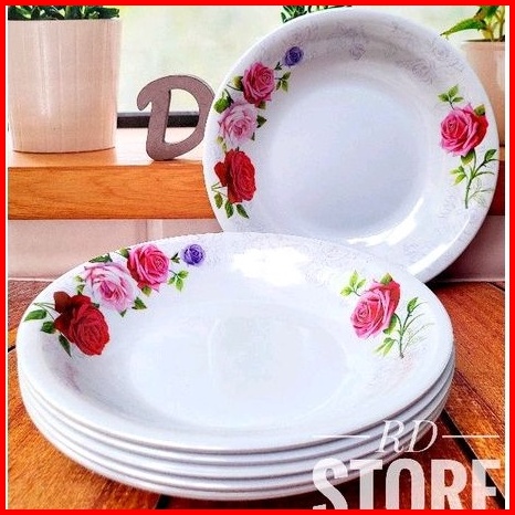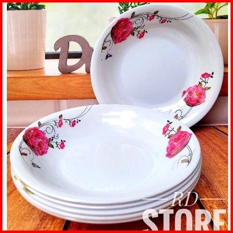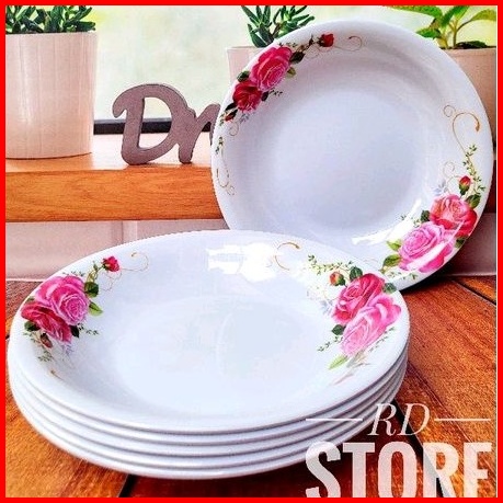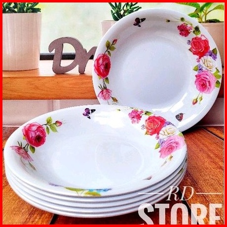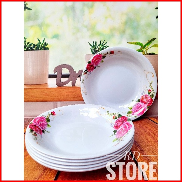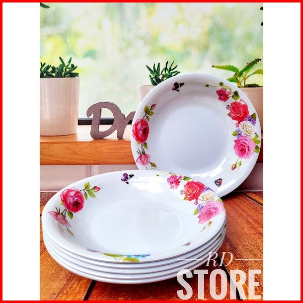 Promo 6.pcs Piring Makan Cekung Melamine Motif Rose