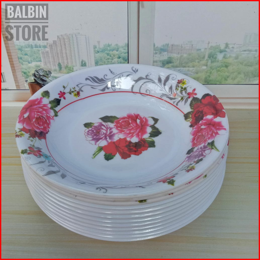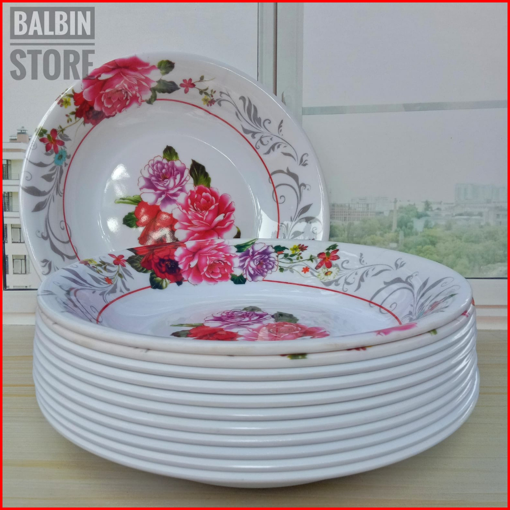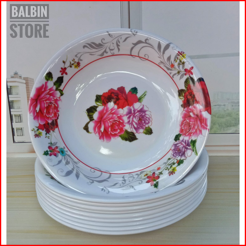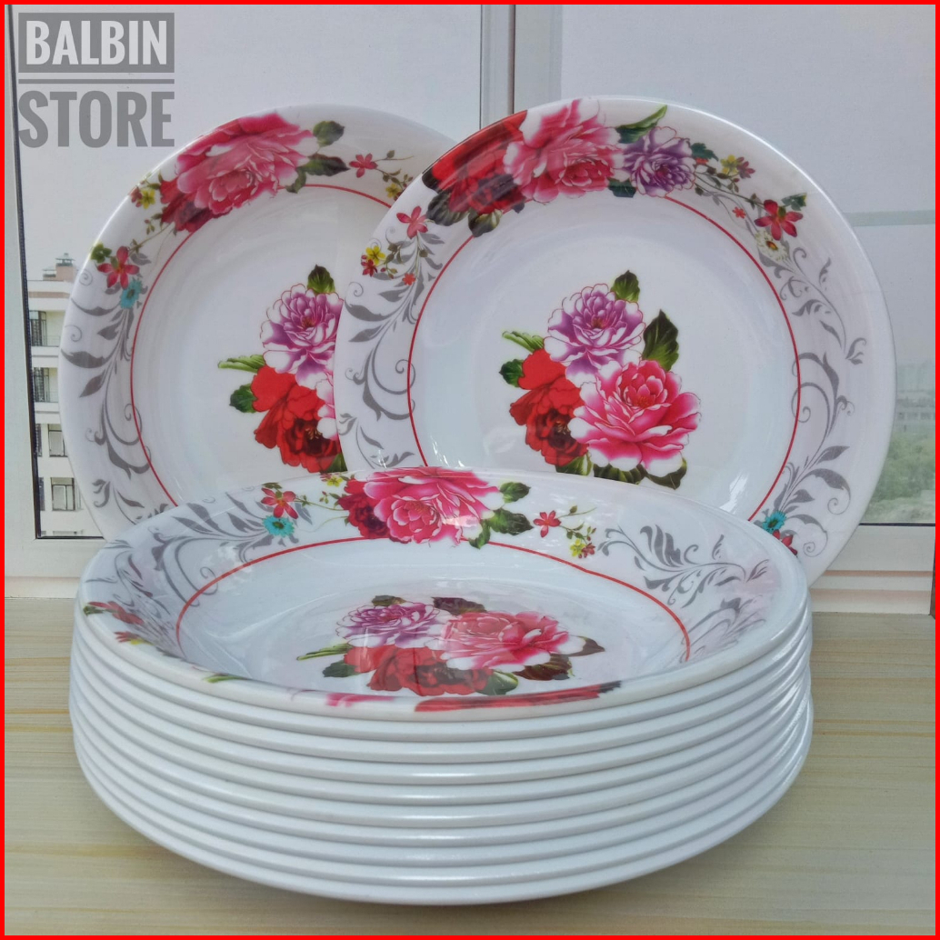 Promo 6.pcs Piring Makan Melamine Ware Ukuran Besar 23.cm Motif Red Rose Food Grade