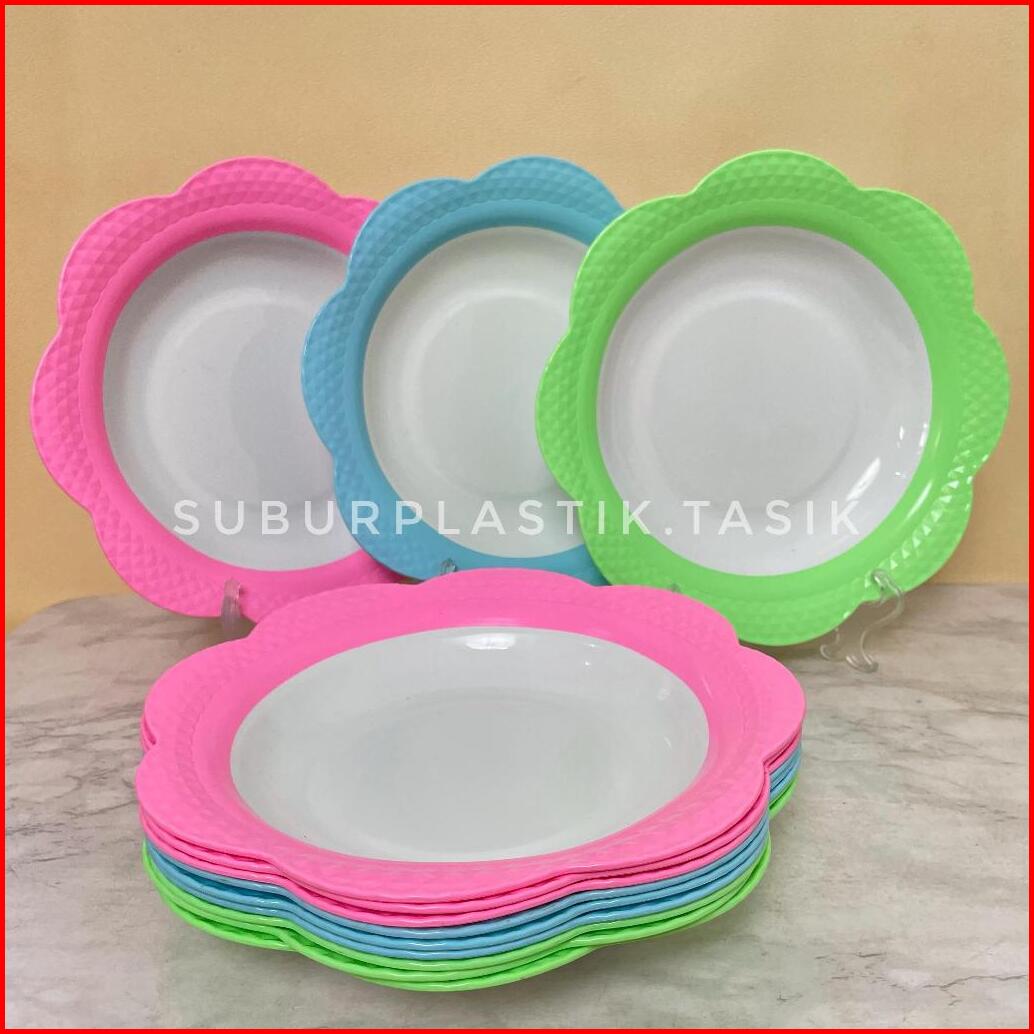 6 12 Pcs Piring Bunga Asia Pacific Plastik Tebal 10 Inch Besar Sajian Makanan Serbaguna