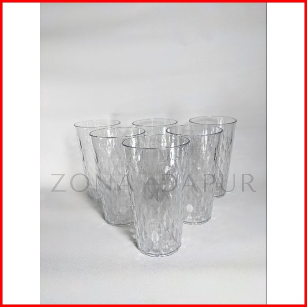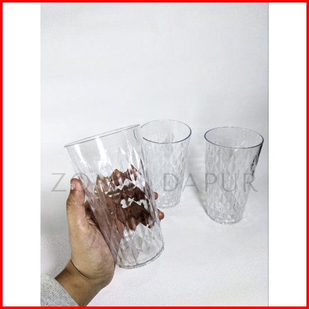 6 Pcs 1 Lusin - Gelas Mika Bening Diamond 450 Ml Sunrise - Gelas Plastik Bening - Gelas Es Teh